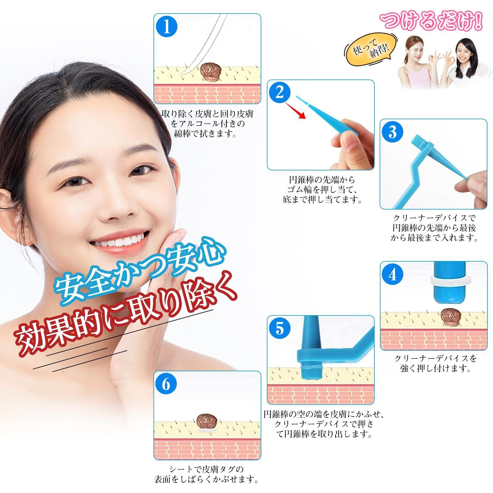 【痛みなく完璧に処理】このツールによる処理方法は、場所や大きさによって先端の異なる円錐器具と相応するゴム輪を使い取り除く方法です。