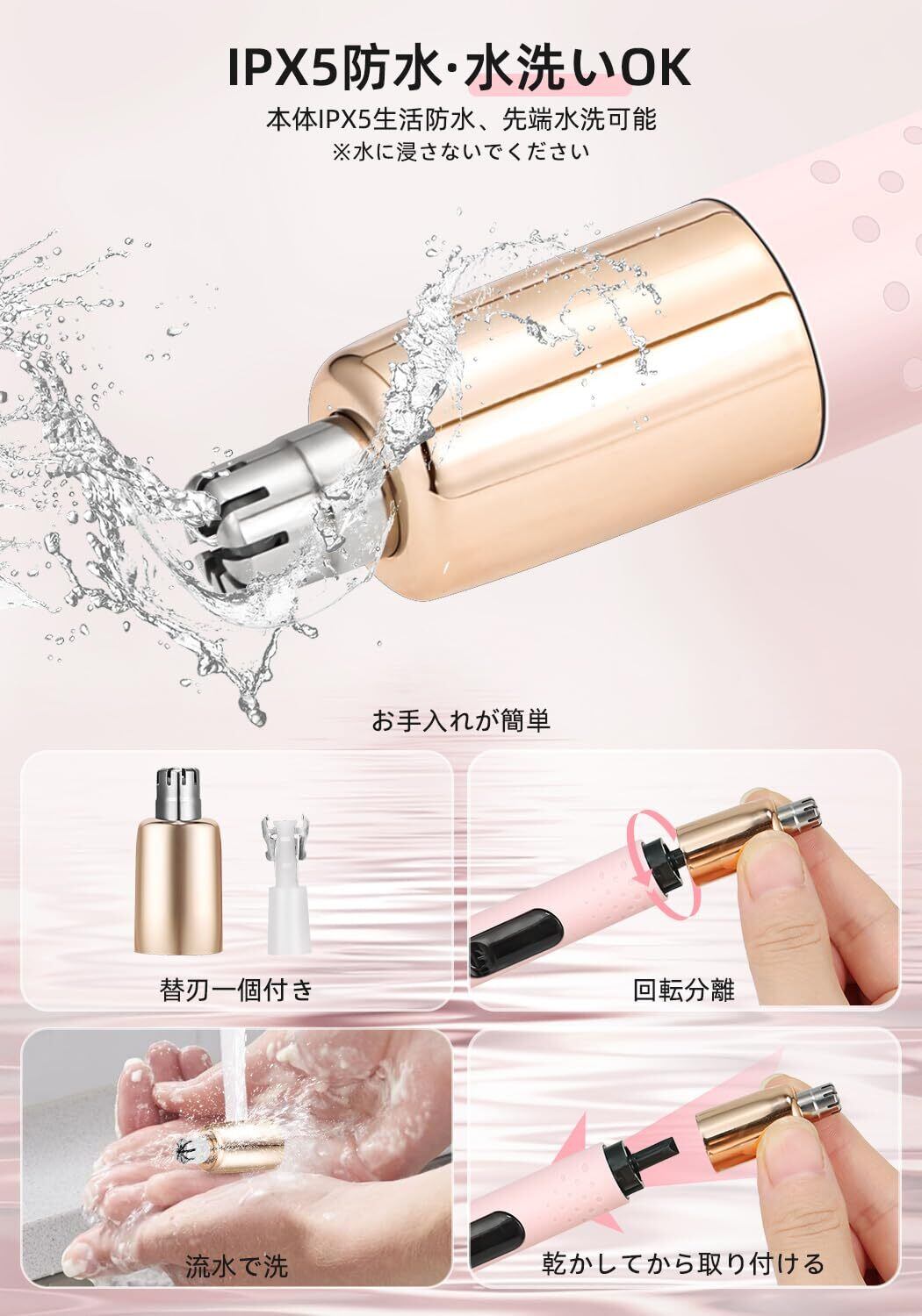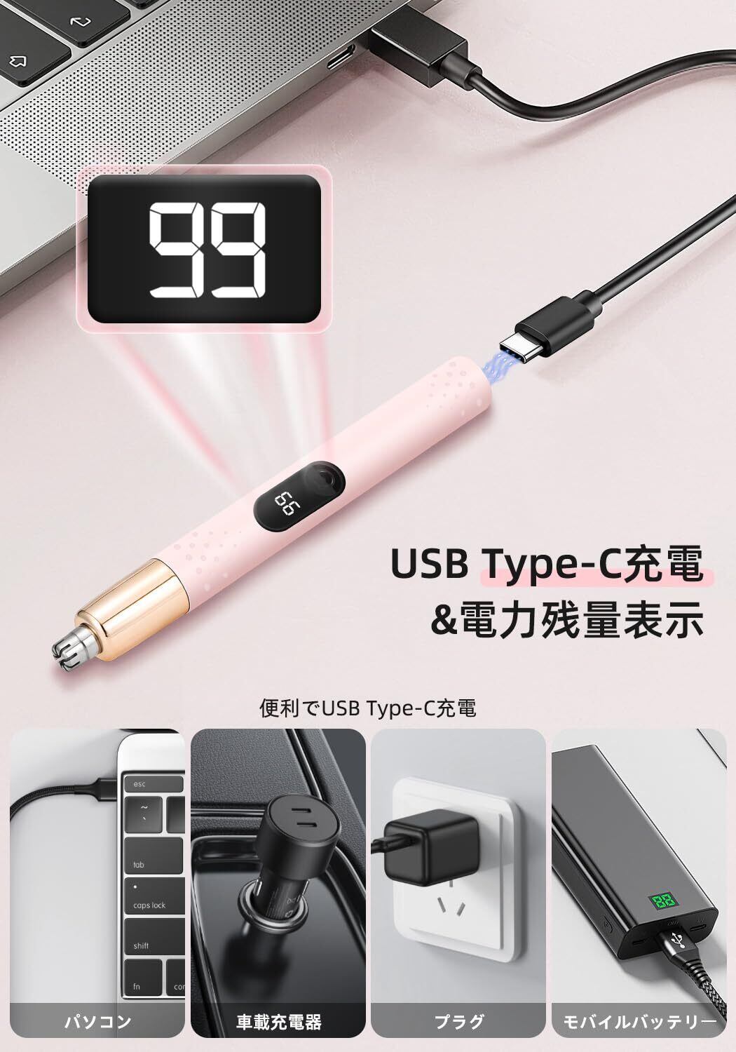 鼻毛カッター レディース メンズ 【2024新登場·4色あり·替刃付き】耳 鼻毛切り LCD電力量表示 水洗い可能 鼻毛カッター エチケットカッター USB Type-C充電式 低騒音 小型 持ち運び便利 おしゃれ 男女兼用 若い男女に最適 (ピンク)
