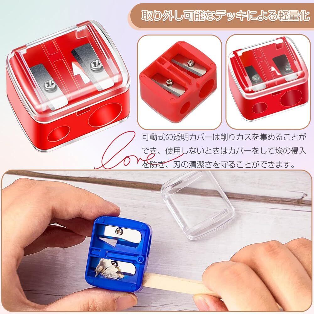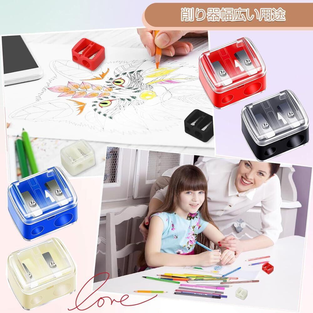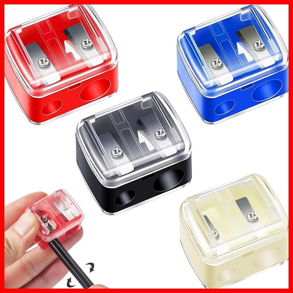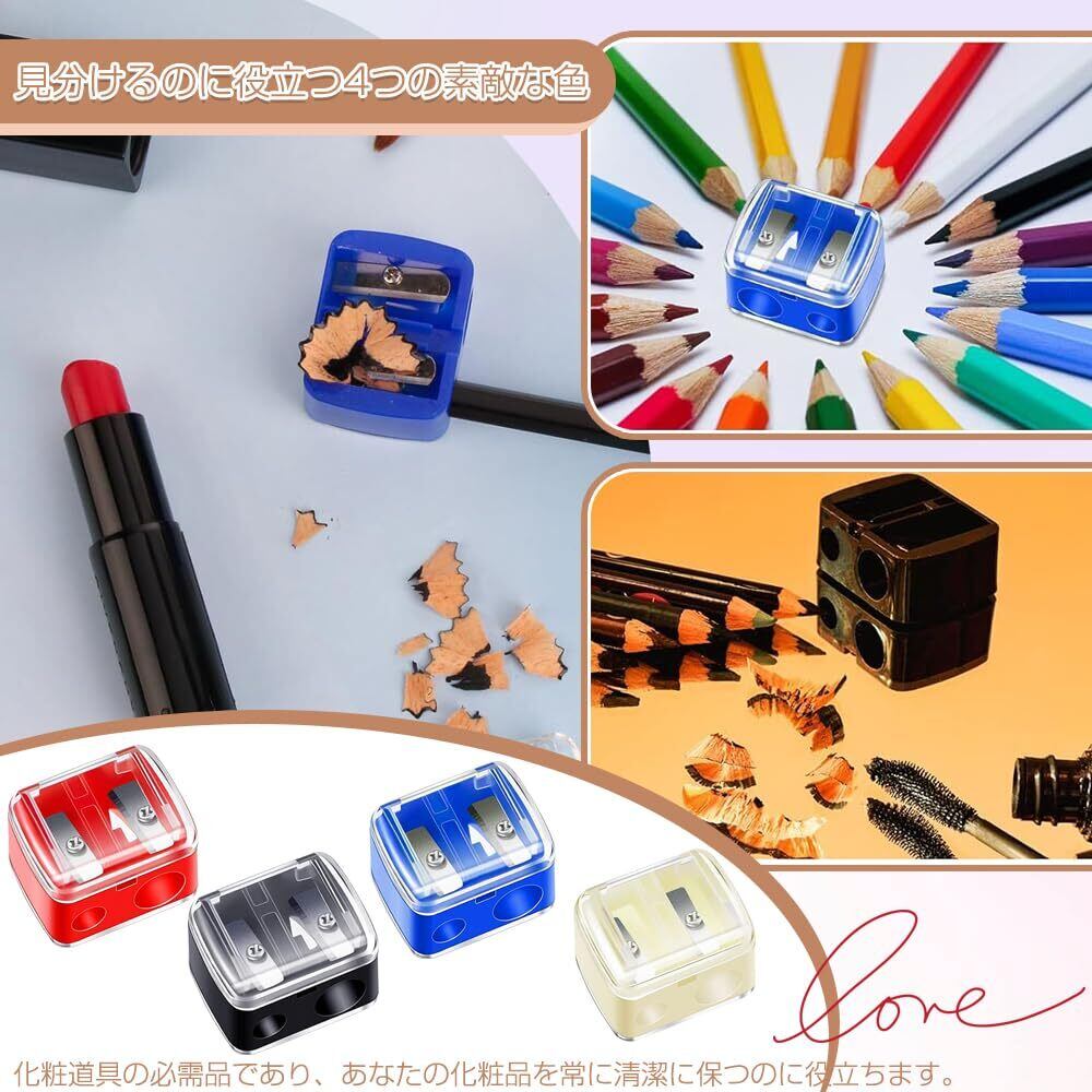 アイライナー削り器 化粧 鉛筆削り 眉ペンシル削り 4点セット ミニ 2穴設計 透明カバー 軽量 可動式 旅行 外出時 便利 携帯用補助工具 リップライナー 鉛筆用 時間節約 迅速操作 メイクペンシルシャー 眉毛ツール 初心者とプロ向け(ブラック/レッド/ブルー/ベージュ4色各1本)