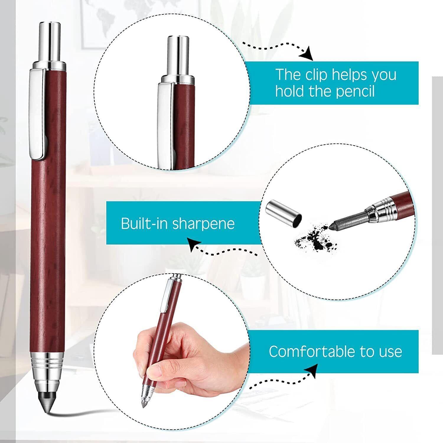 DILOANNA 5.6mmシャープペンシルホルダー 2自動メカニカルグラファイトペンシル カーペンターペンシル 4鉛筆リフィル シャープナー付き