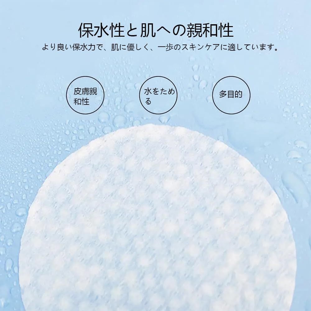 【一枚多用途】拭き取りパッドが色々な場合に活用しています。メーク落としシート、コットン拭き取り用、化粧水用コットン、ネールオフ用コットンなどとして利用できます。メイクを落としたり製品を塗布したりするための最も 的な方法です。トナーやローションを効率的かつ均一に塗布するの 。