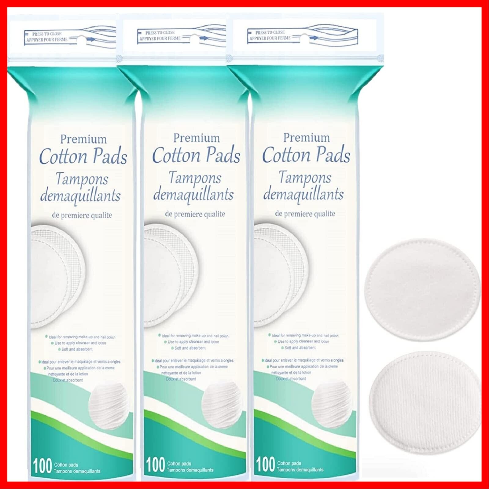 YOYOSOFT コットン ふきとり用 丸型 コットンパフ 化粧水用 2面3層構造 300枚(100枚x3個) メイク落とし ネイル落とし 化粧コットン 毛羽立たない スキンケア 100%コットン