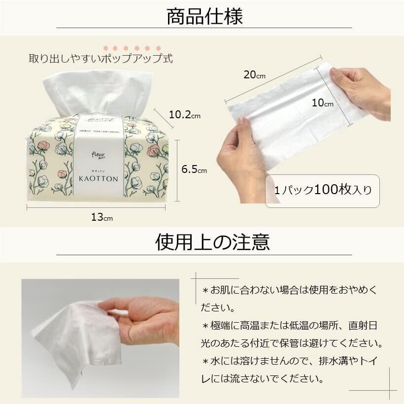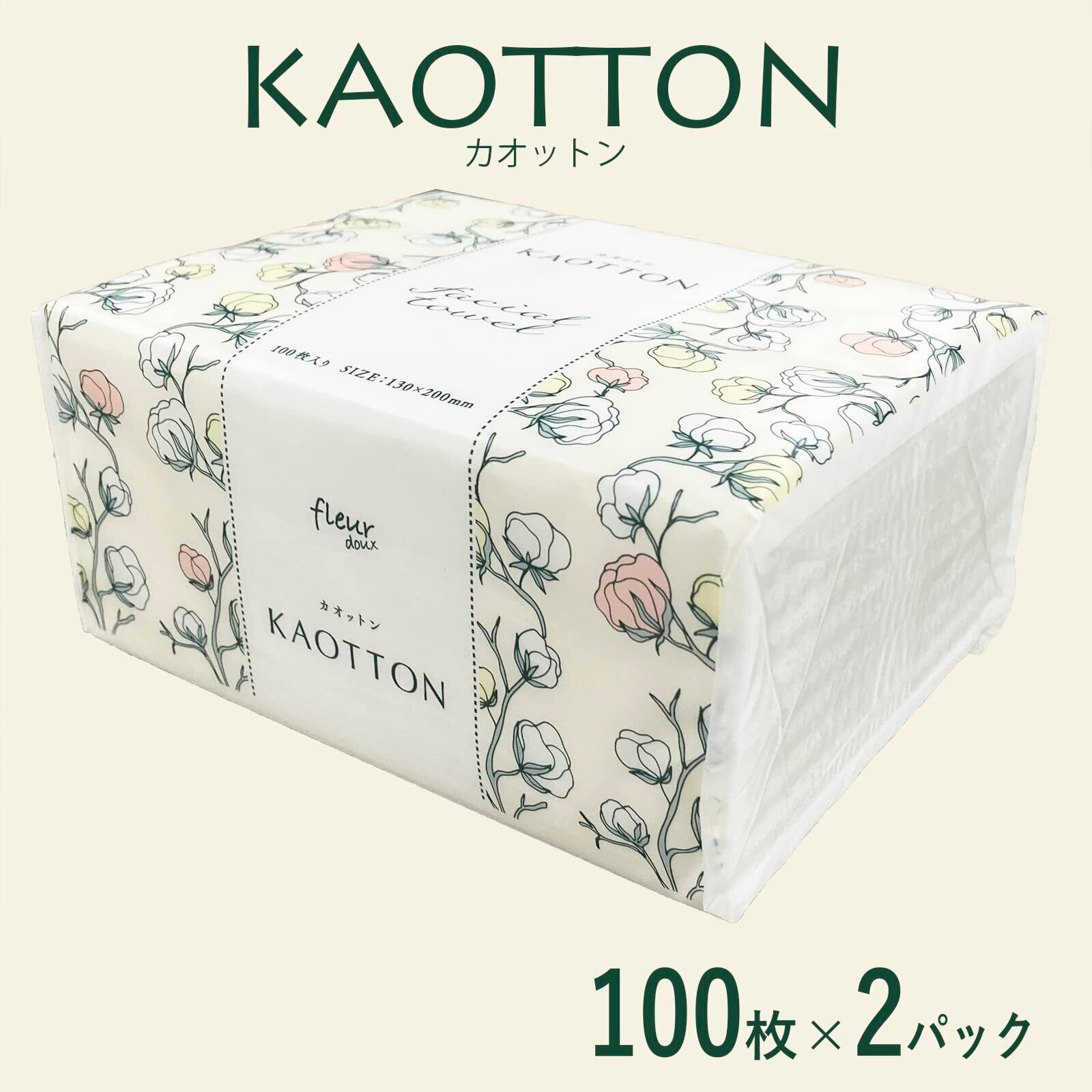 【新春セール】丸紅フォレストリンクス(Marubeni Forest Linx) 使い捨てタオル fleurdoux フルールドゥ KAOTTON カオットン コットン配合 使い捨て フェイシャルタオル ホワイト 約13×20cm 100枚入×2個セット 計200枚 | Cherry Blossoms