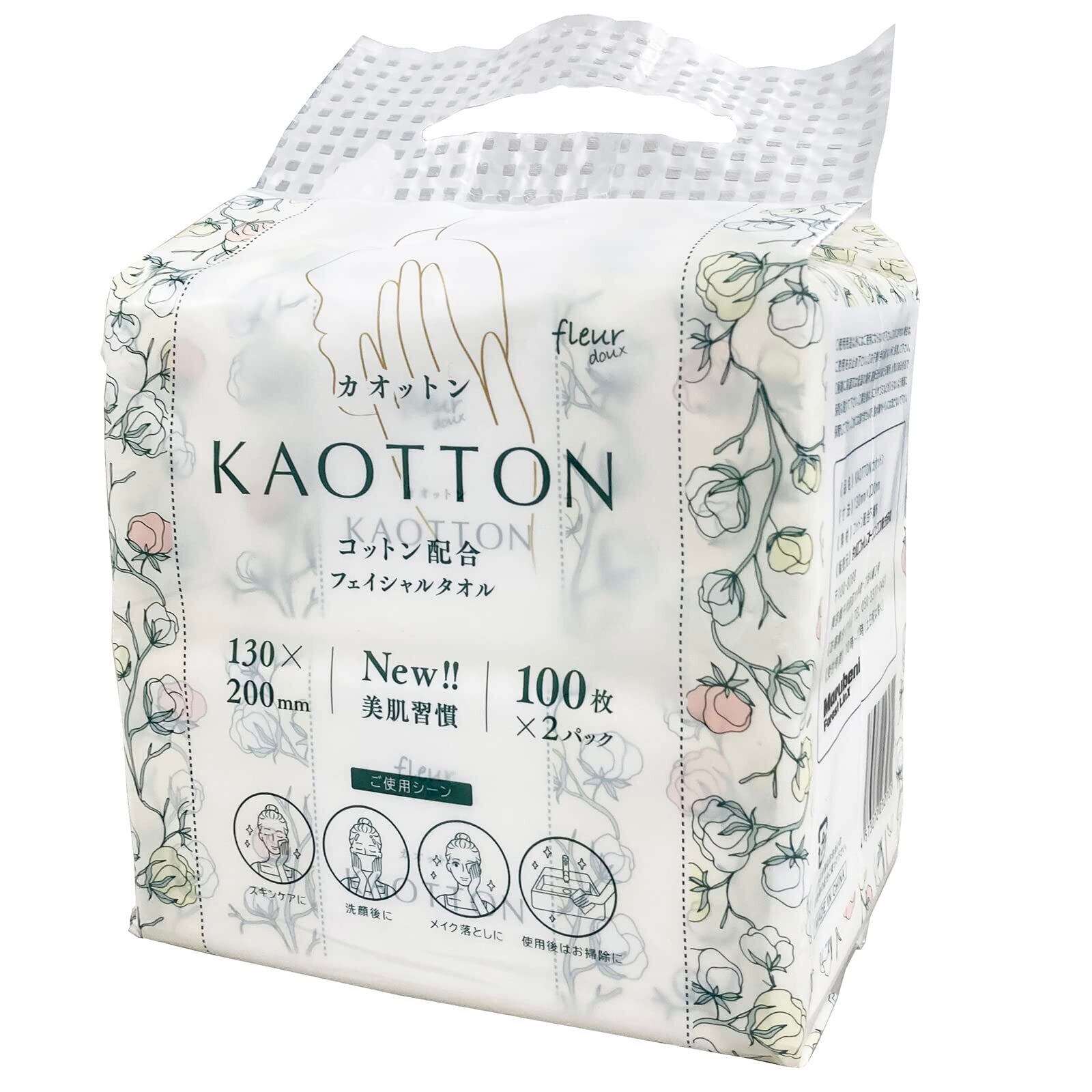 丸紅フォレストリンクス(Marubeni Forest Linx) 使い捨てタオル fleurdoux フルールドゥ KAOTTON カオットン コットン配合 使い捨て フェイシャルタオル ホワイト 約13×20cm 100枚入×2個セット 計200枚