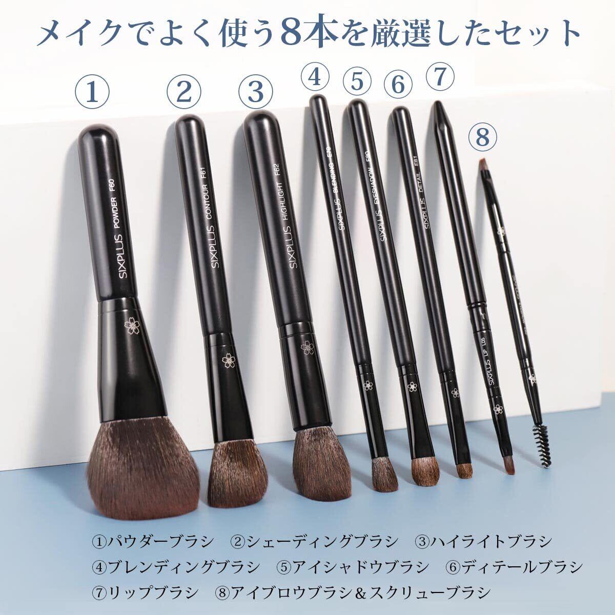 SIXPLUS シックスプラス 人気メイクブラシ 8本セット Dawnシリーズ 柔らかいメイクアップブラシ 描きやすい化粧ブラシ 専門化粧道具 粉含み力 化粧ポーチ付き