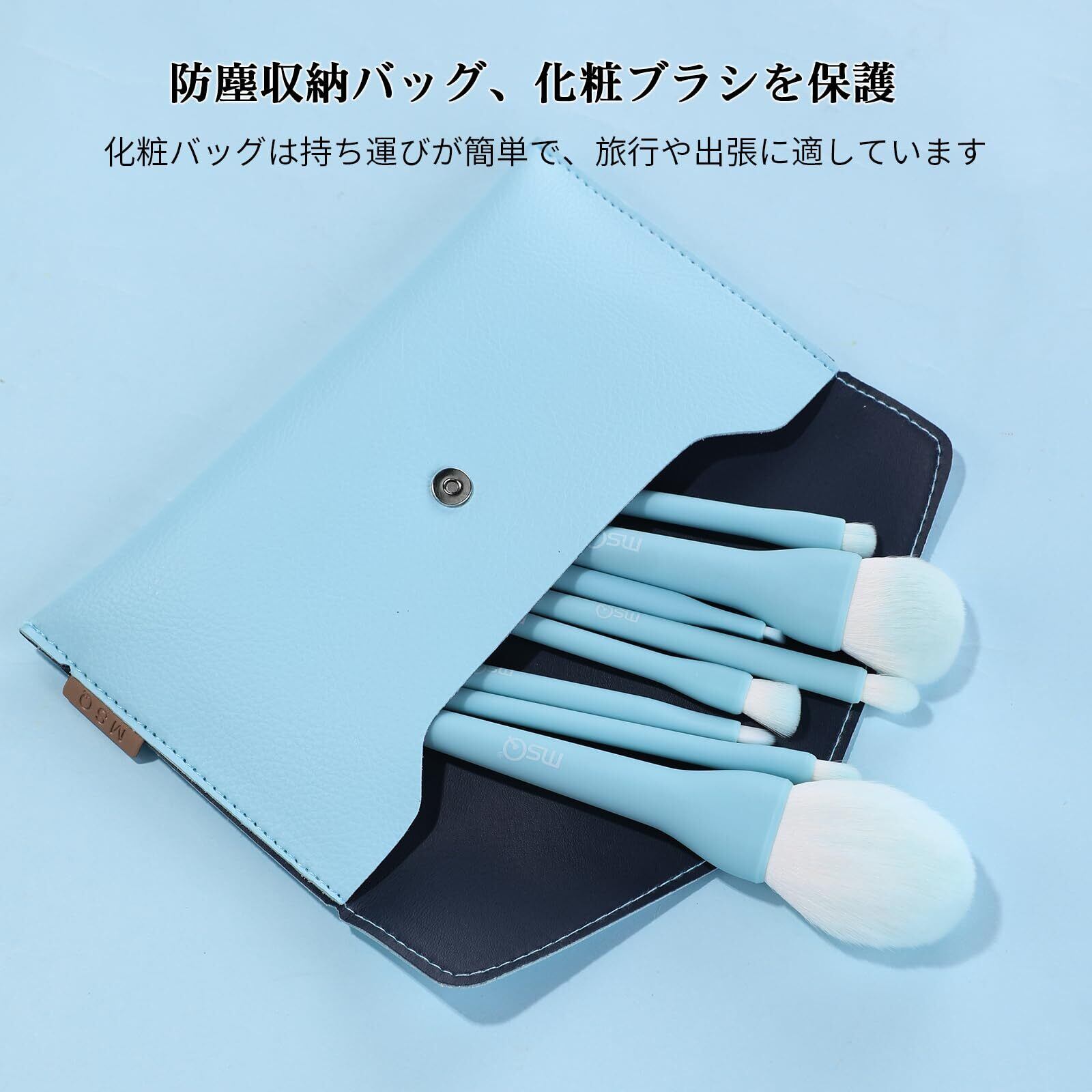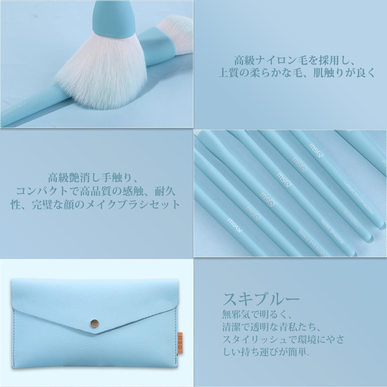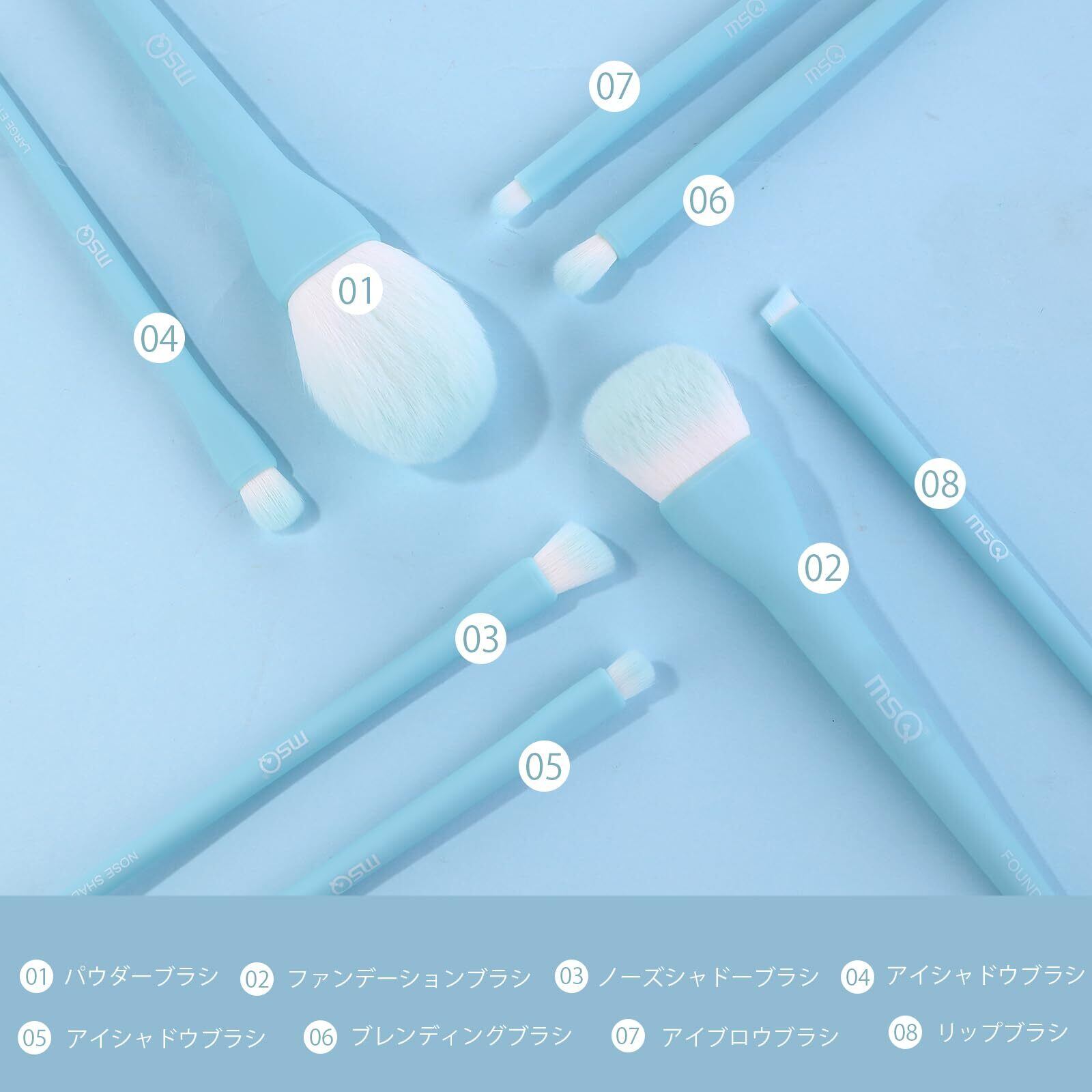 【人気】 MSQ メイクブラシ 8本セット 人気 化粧筆セット 高級繊維毛 超柔らかい 日常の化粧 携帯便利 母の日ギフト 敏感肌適用(ブルー)