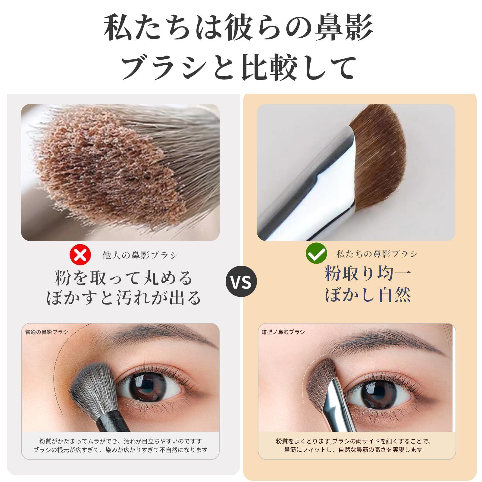aninako ノーズシャドウ ブラシ 斜め メイクブラシ 鼻輪郭ブラシ メイクブラシ ダブルエンド ハイライトブラシ ノーズシャドウブラシ 鼻の立体を作ります 粉を均一につける 斜め ポニー毛 動物毛 すべての肌タイプに