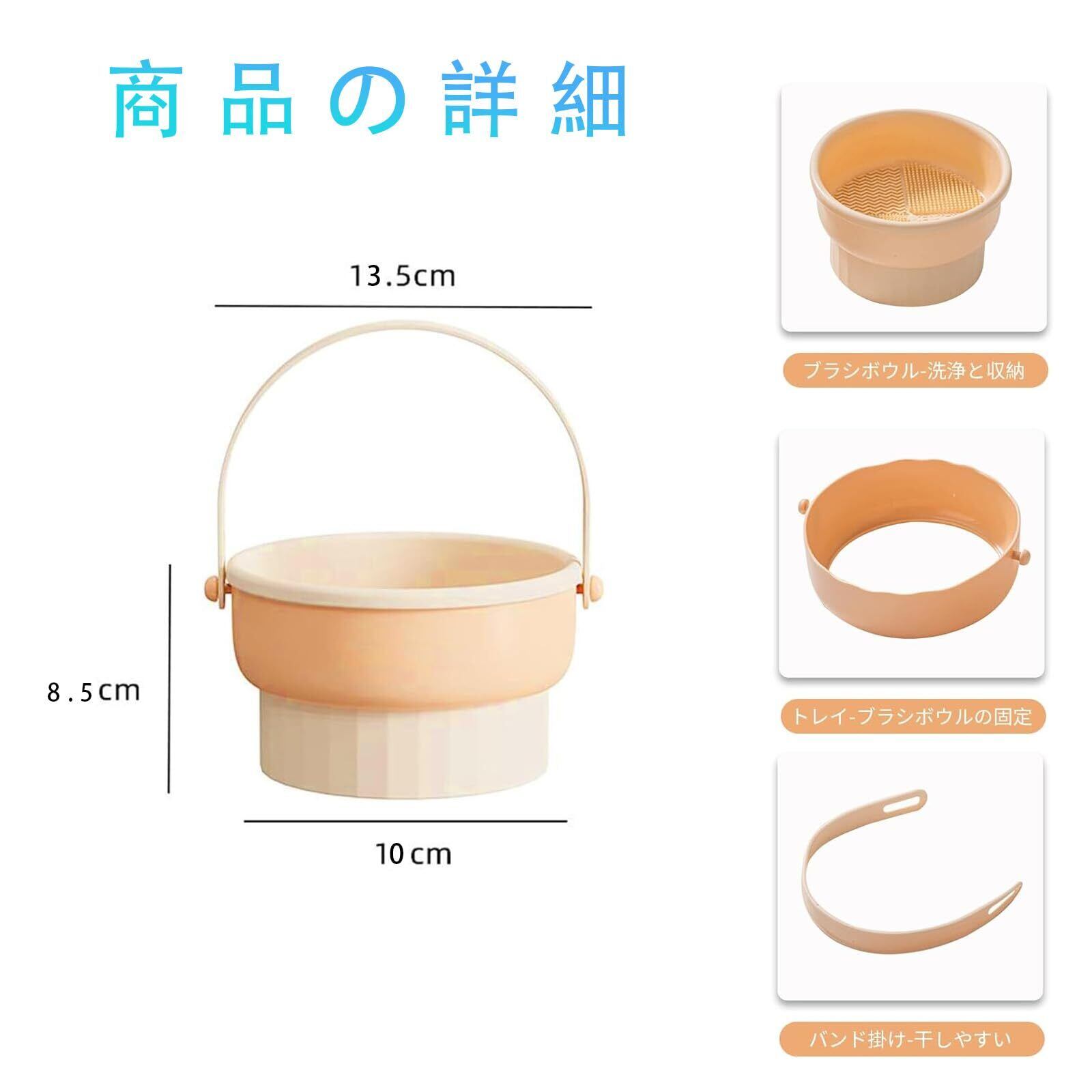 FineGood メイクブラシクリーナー メイクブラシ洗浄・乾燥・収納 3in1 メイクブラシ おしゃれ 無臭 パフクリーナー スポンジ折りたたみ 大容量 吊り下げ可能 取り外し可能 置き台 洗浄 清潔(薄い肌色)