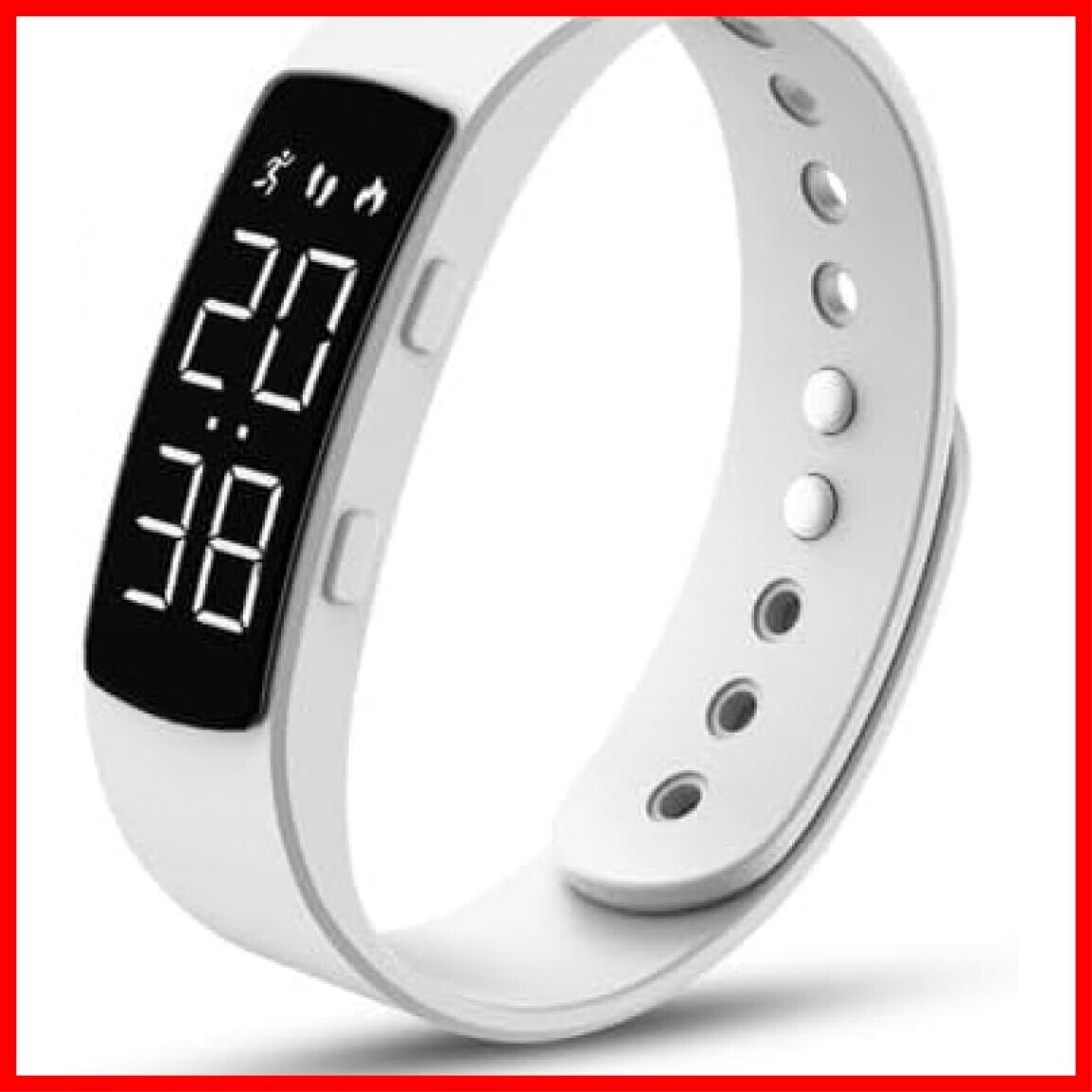 GEBYUI LED 発光 スポーツブレスレット時計|簡易歩数計・目覚まし機能 ユニセックス設計 屋外充電対応|学生・子供向け レジャー・誕生日ギフトに最適な電子ブレスレット (白)