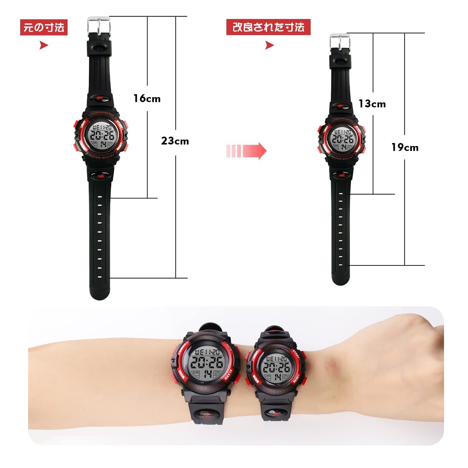 多機能デザインと新しい改良寸法:50M防水、デジタル表示、LED発光表示、日付表示、アラーム、ストップウォッチ。文字盤とバンドのサイズを改良し、子供の着用に最適。日本語の説明書が付いていて使いやすいです。ファッションスポーツ腕時計、子供のお気に入りの贈り物。