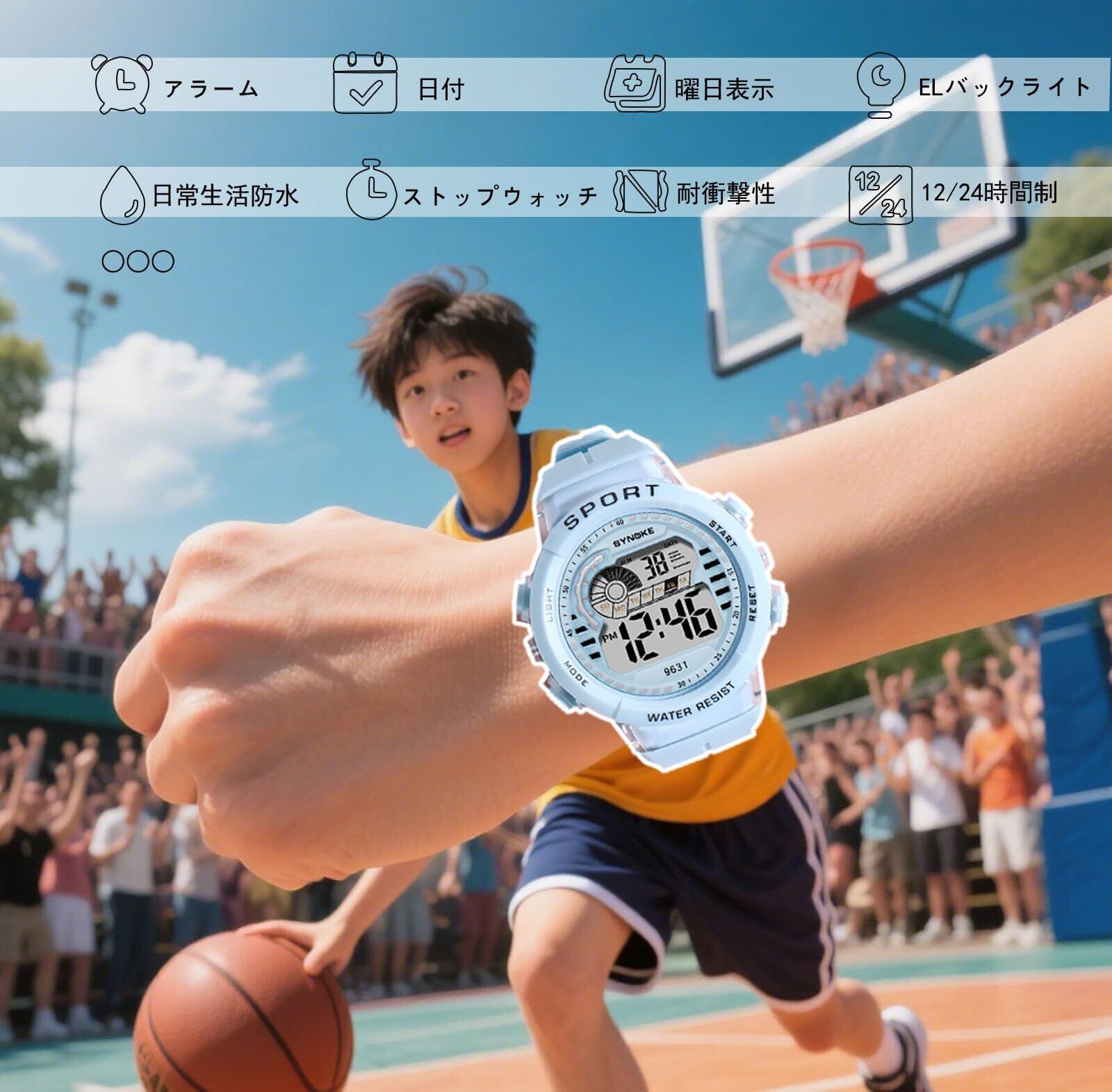 「電子腕時計」「デジタル表示」「生活防水」「多機能」「スポーツウォッチ」「青少年 腕時計」