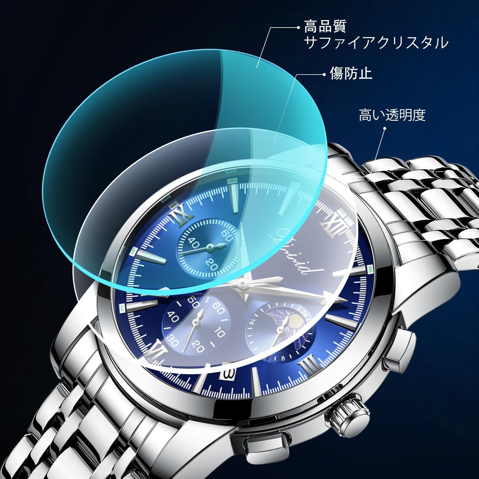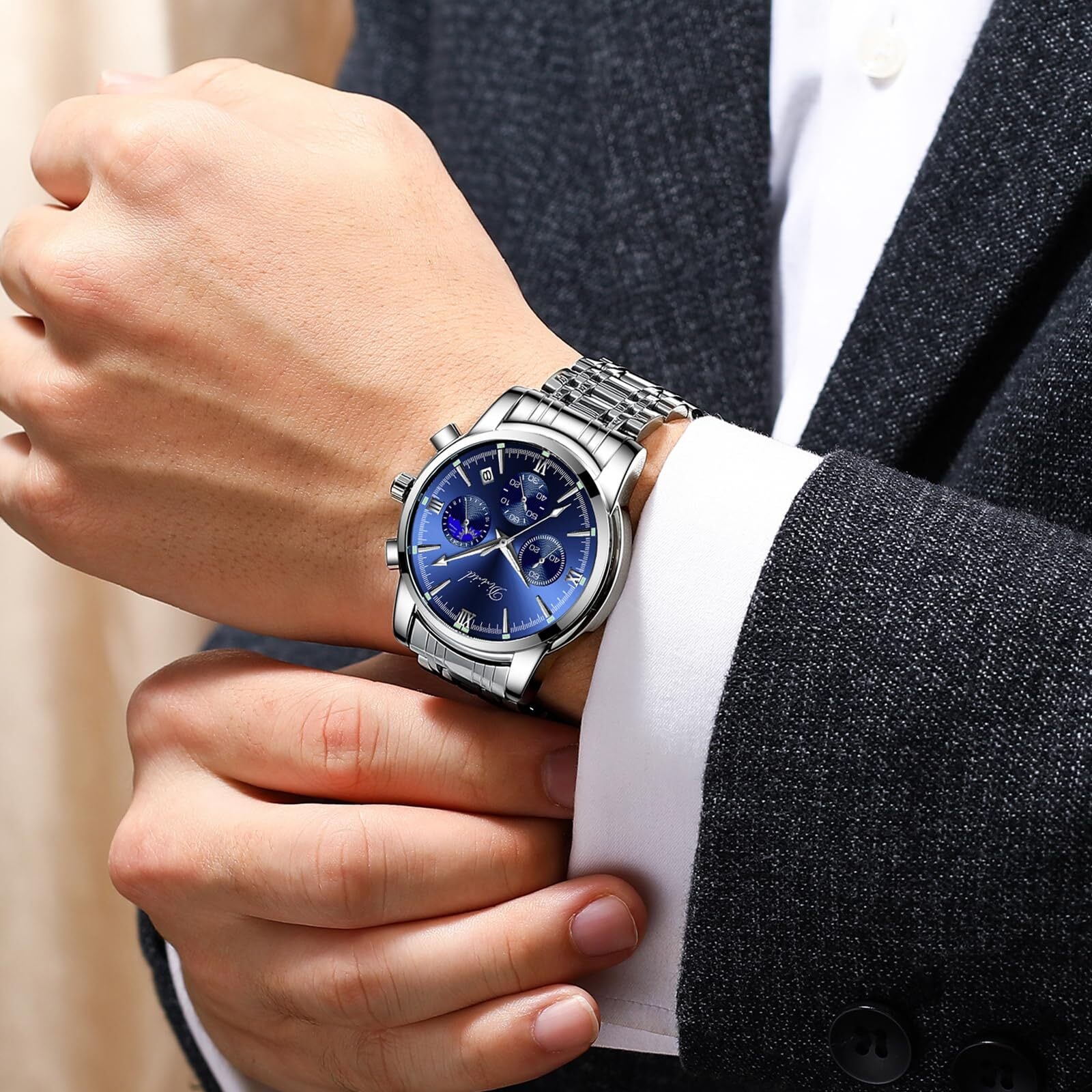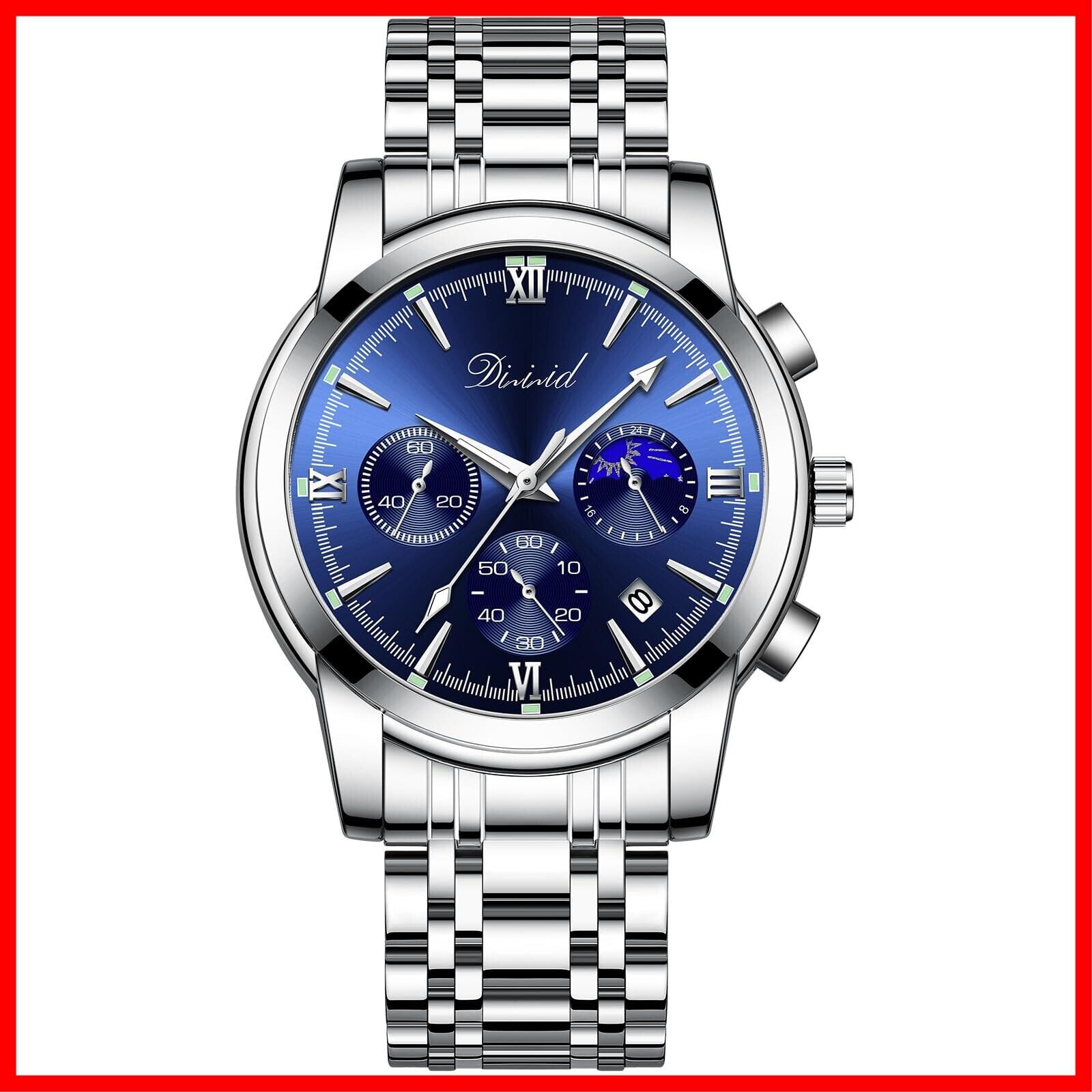 DIZIZID 腕時計 メンズ クオーツクロノグラフウオッチ 人気 ビジネス 腕時計 おしゃれ 多機能時計 ステンレス 3気圧防水 日付 蓄光 クロノグラフ うでどけい watch for men 男性 ギフト プレゼント 就活 (シルバーブルー)