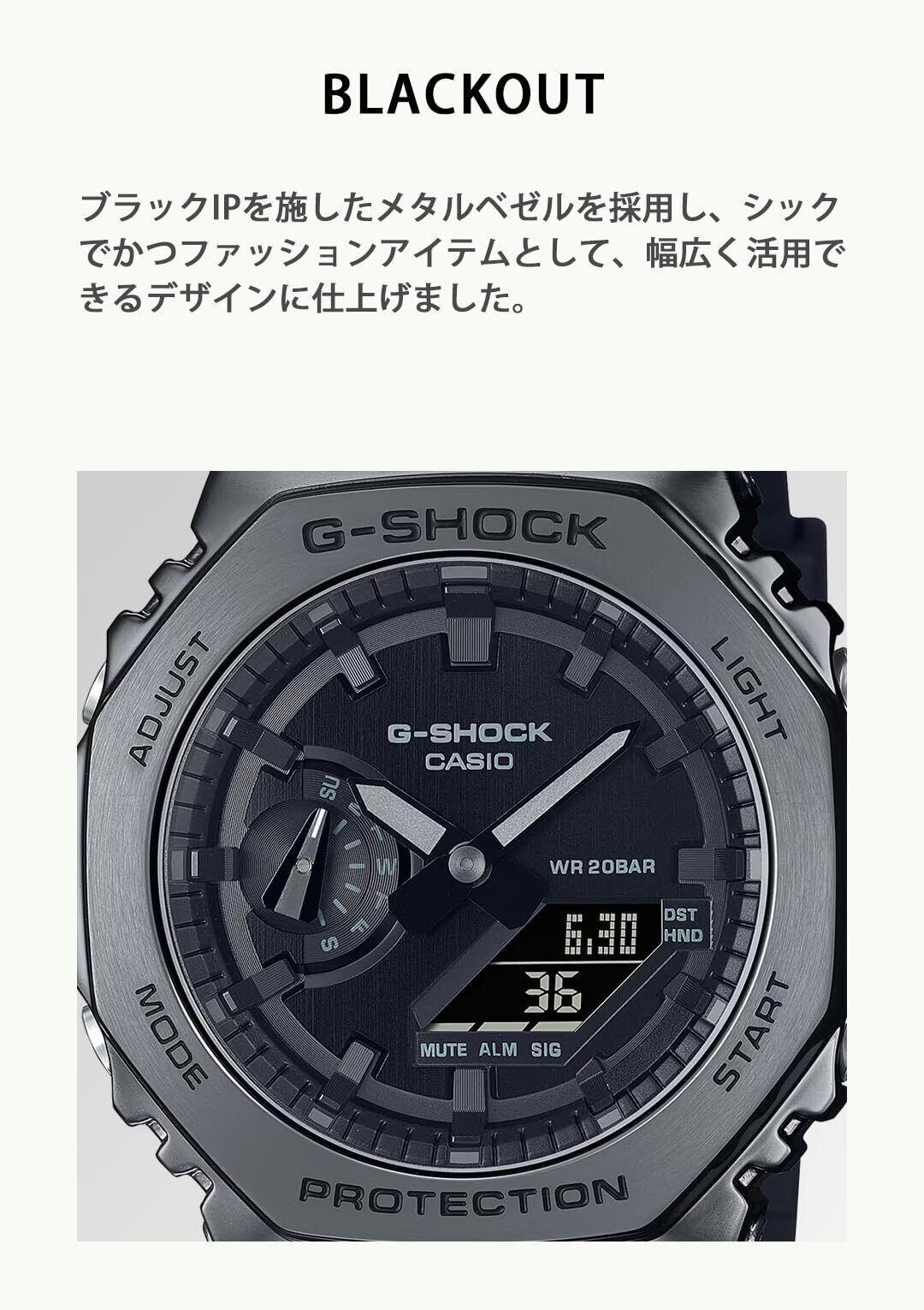 1983年の発売以来、飽くなき強さを求めて進化を続けるタフネスウオッチG-SHOCKから、メタルカバードシリーズをベースに全体をブラックアウトに仕上げたモデルです。ブラックIPを施したメタルベゼルを採用し、シックでかつファッションアイテムとして、幅広く活用できるデザインに仕上げました。ベースモデルには、オクタゴンベゼルのGM-2100、そしてビッグケースのGM-110を採用しています。オールブラックのカラーリングで、幅広くご利用いただけるクールなデザインとなっております。