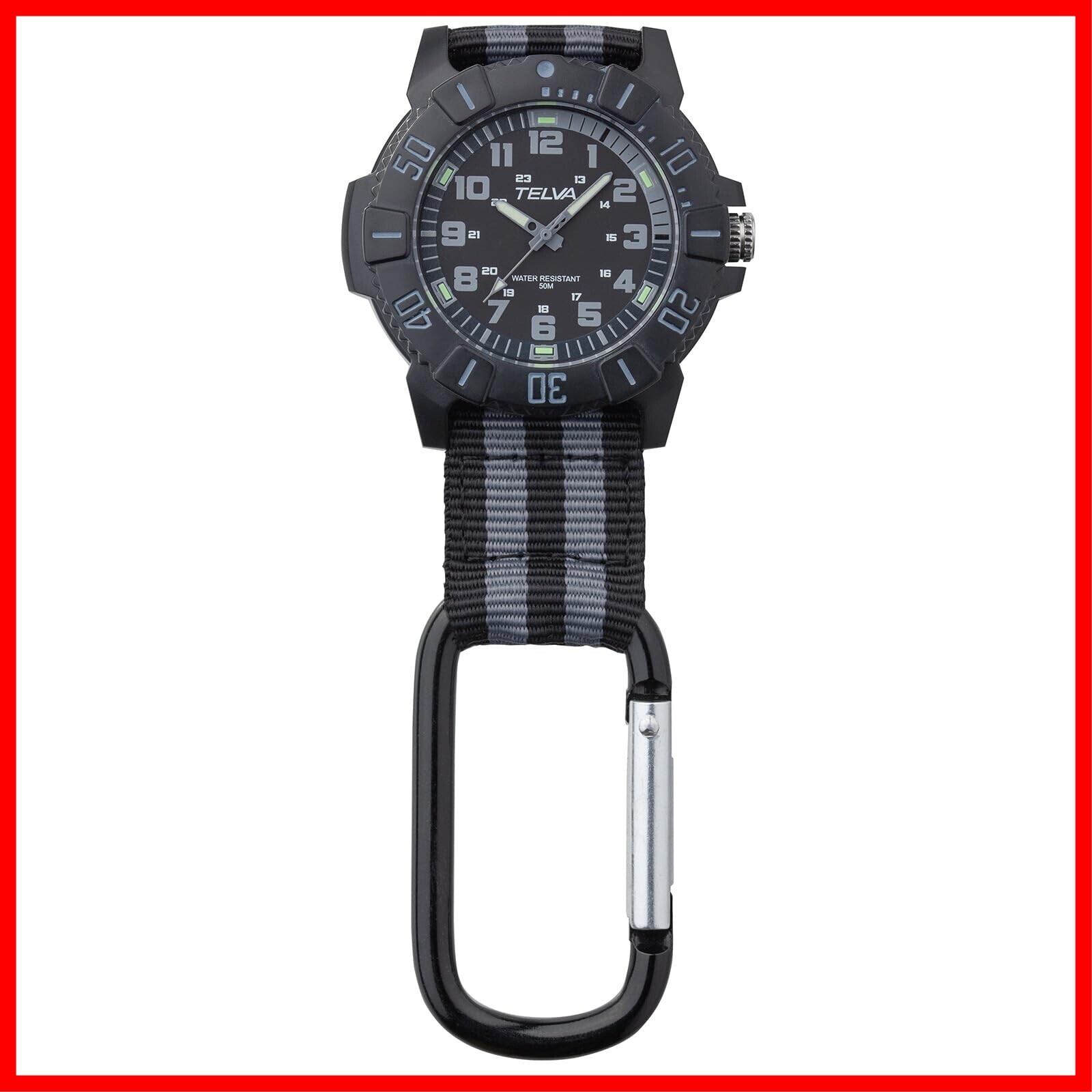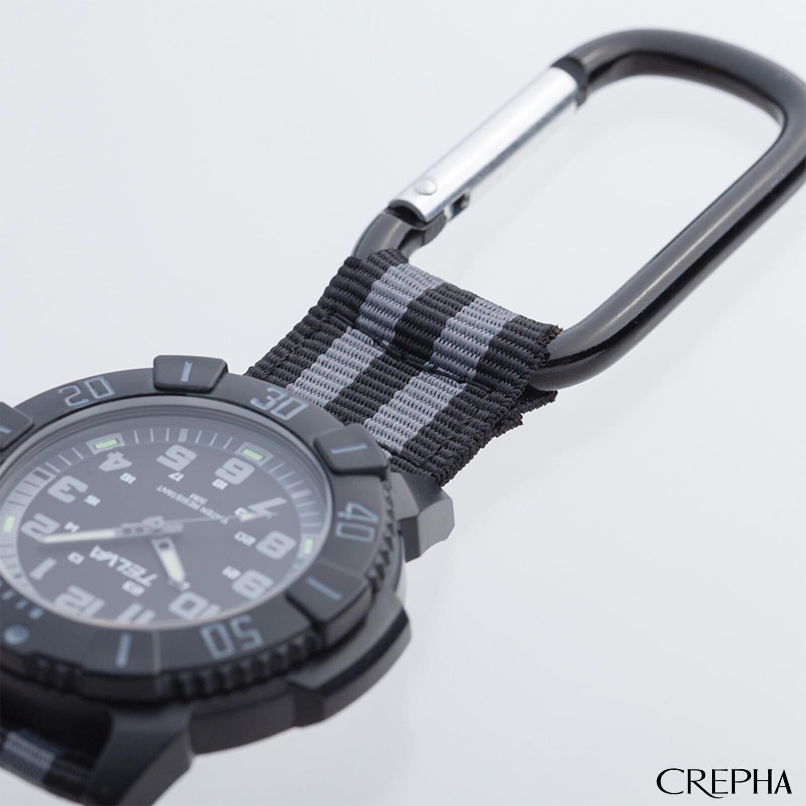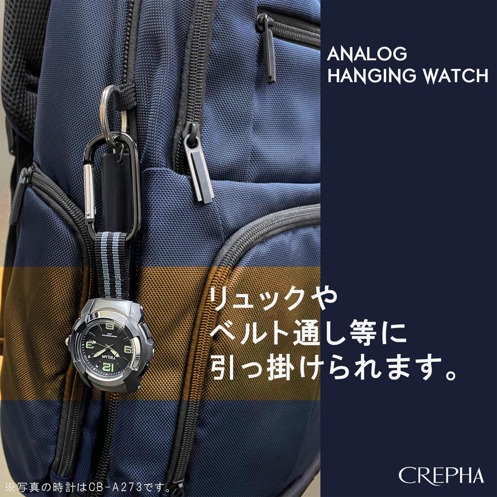 [クレファー] 懐中時計 カラビナウォッチ アナログ 防水 ナイロンベルト 黒 文字盤 CB-A272-GR メンズ