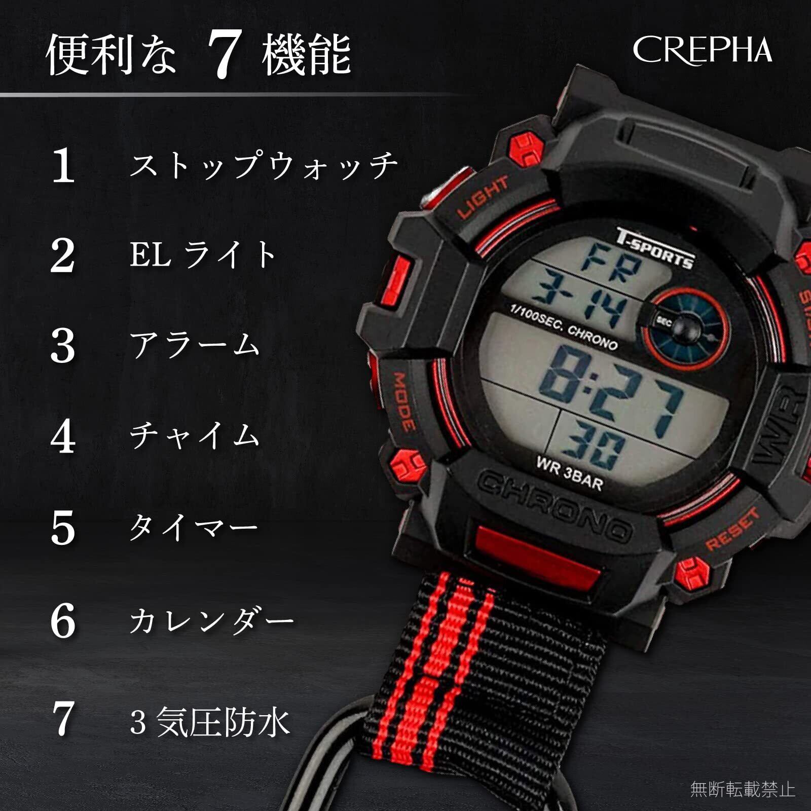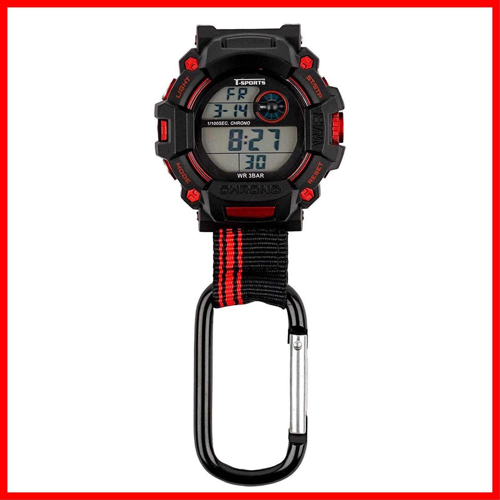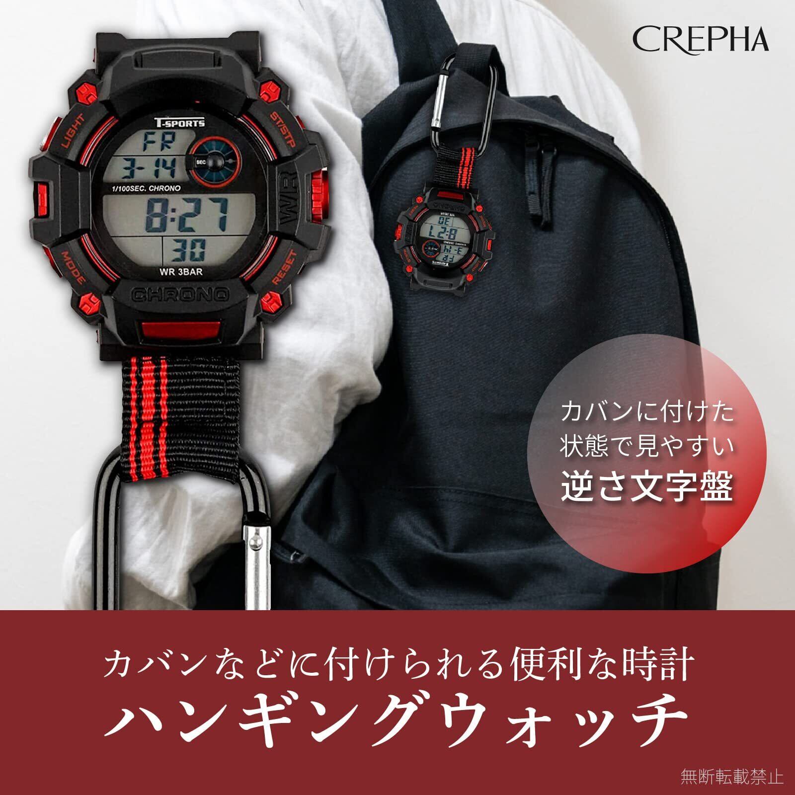 [クレファー] 懐中時計 デジタル メンズ 防水 カラビナ キーホルダー ブラック CB-D140-BK