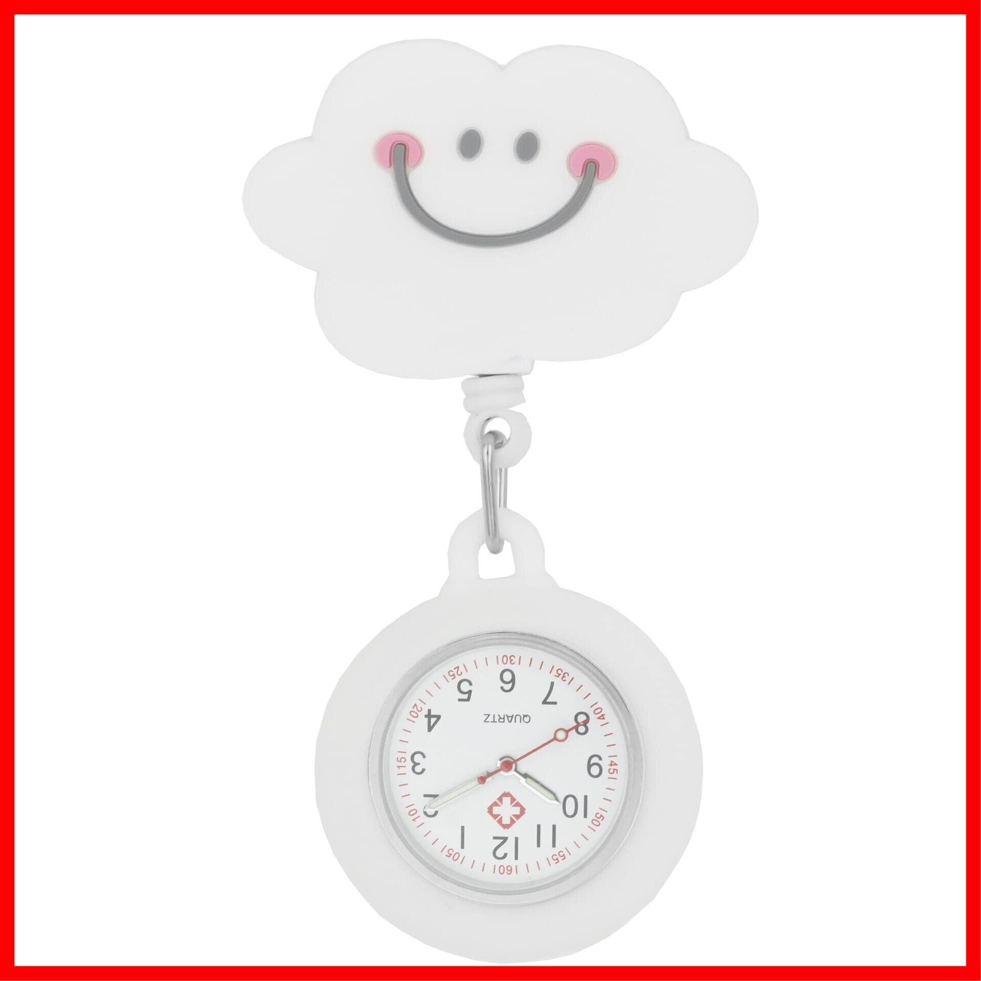 ナースウォッチ 懐中時計 クリップ式 見やすい ポケットウォッチ 看護師用 男女兼用 誕生日 シンプルで防水 伸び縮み可能 可愛い スマイリー クリップ付き (雲)
