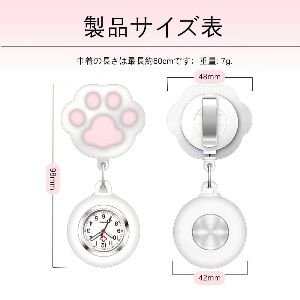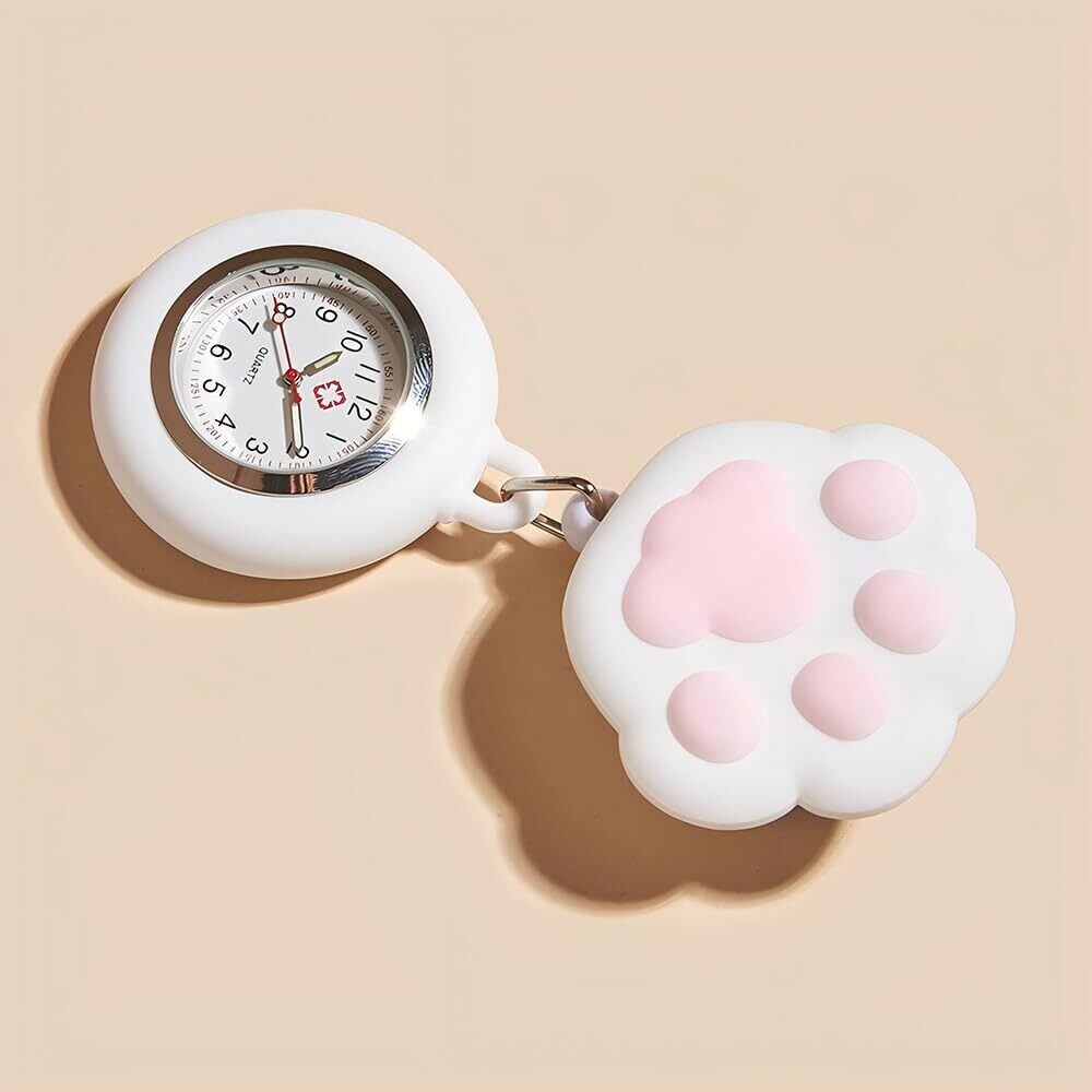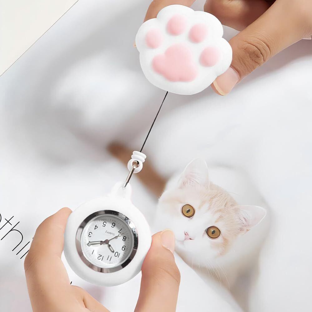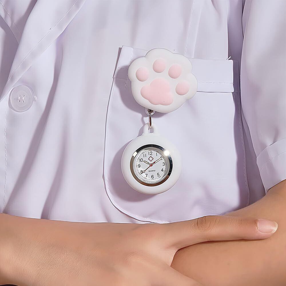 ナースウォッチ 数字 懐中時計 伸び縮み可能 白色 ポケットウォッチ 見やすい看護師用 かわいいデザイン フックのデザイン (ホワイトの猫の爪)
