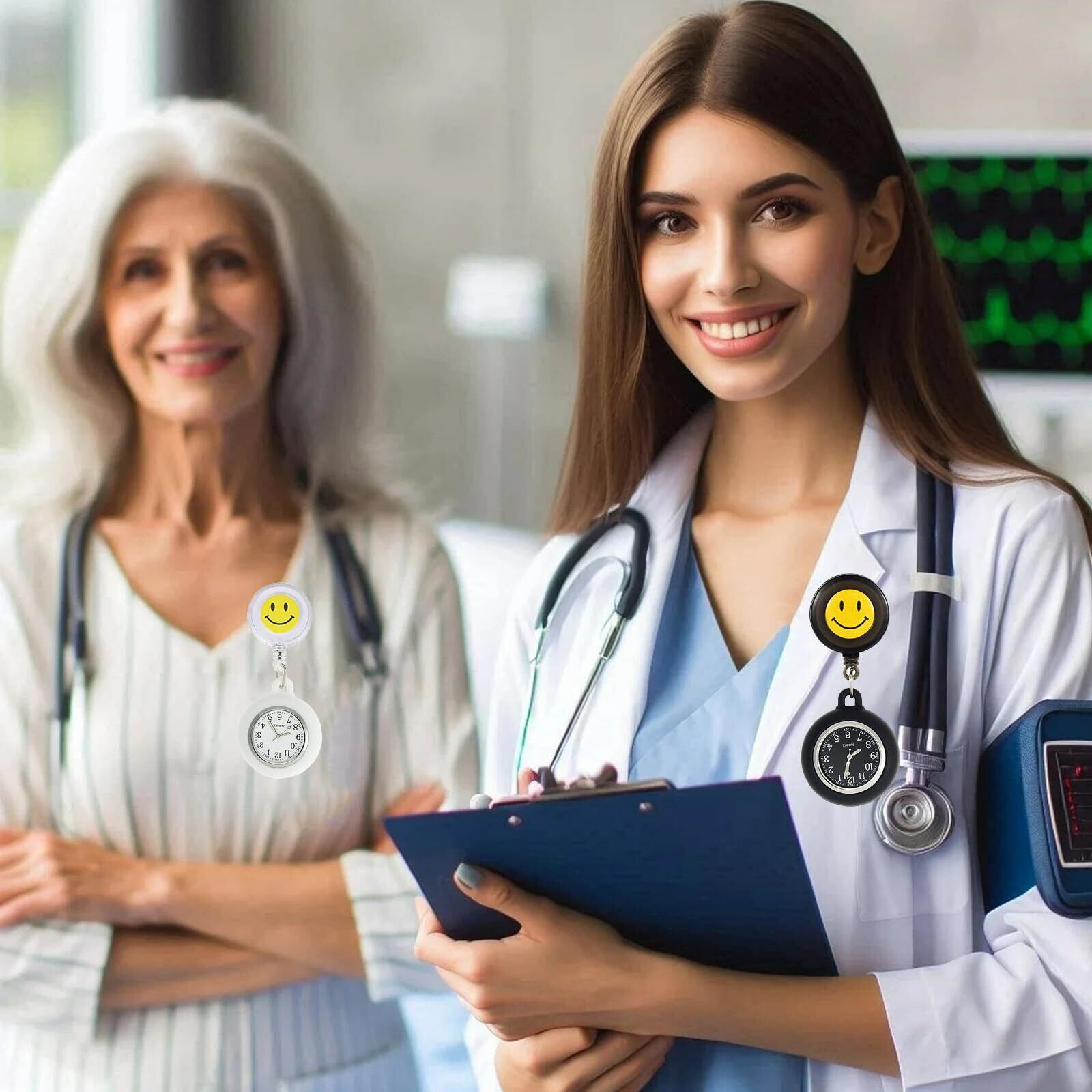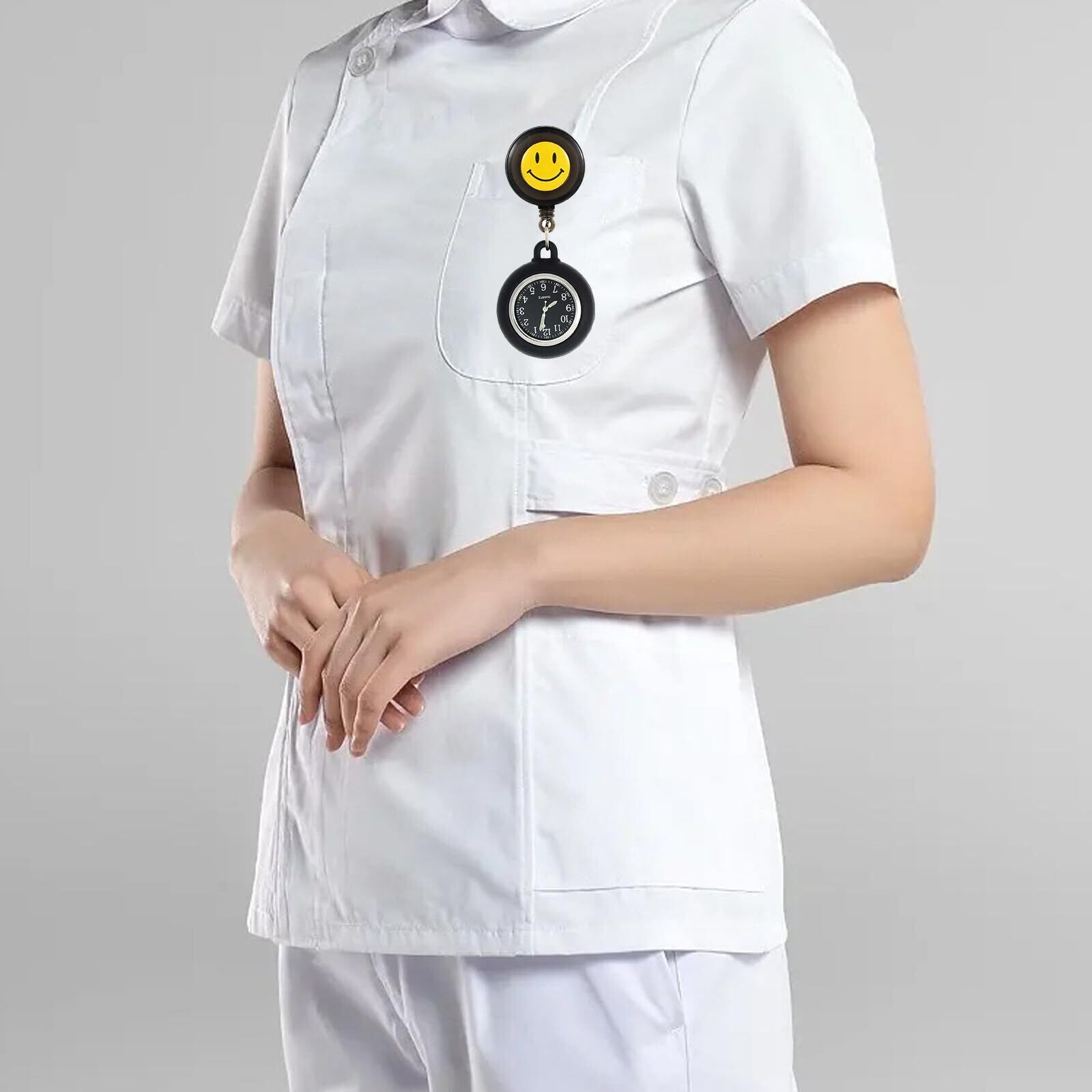 ナースウォッチ 懐中時計 見やすい 文字盤 伸縮式 クリップ式 片手操作可能 夜光 子供 学生 医師 介護士対応 男女兼用 便利 (ホワイト)