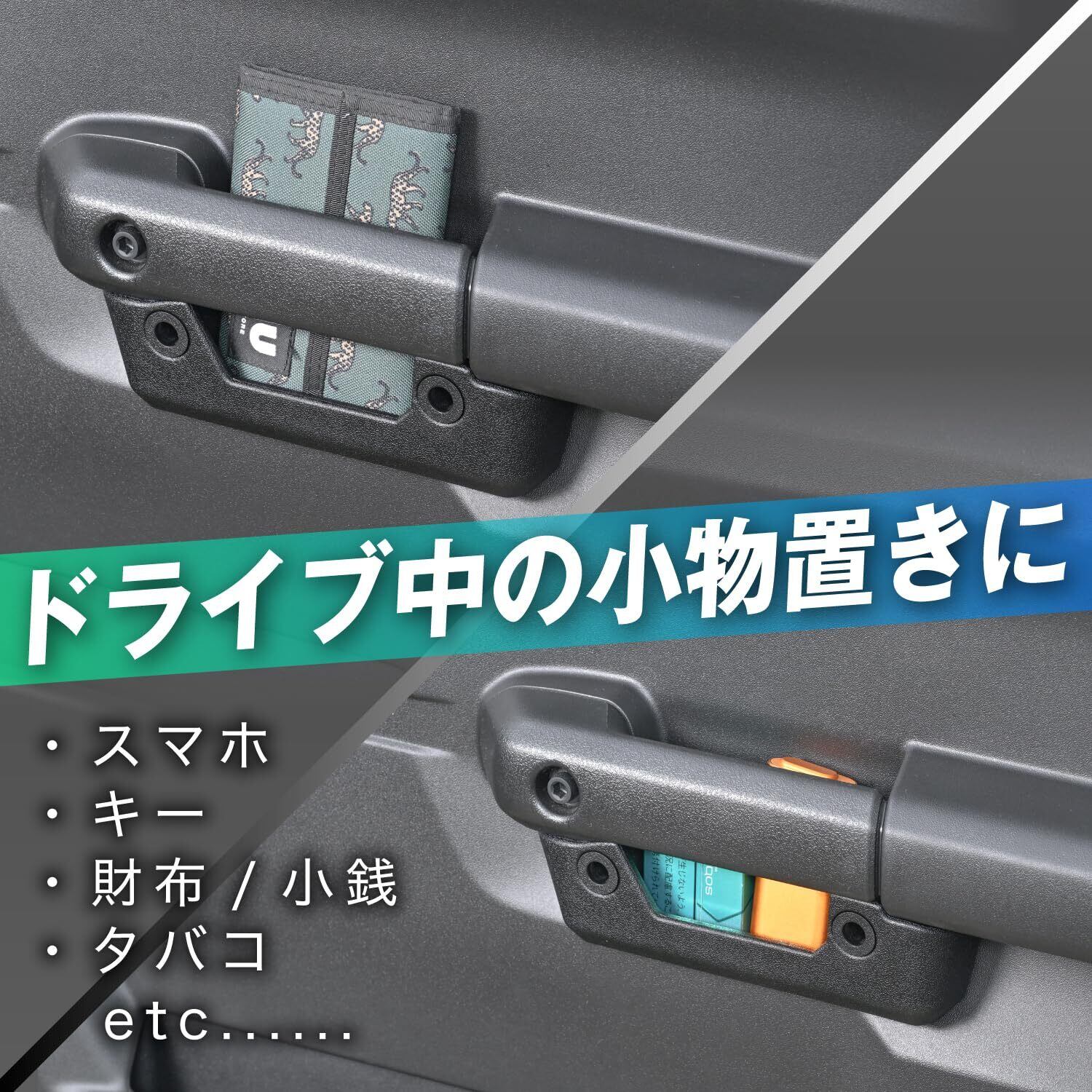 ●スズキ・ジムニーのドアハンドル下に取り付けることで、収納を増やすことができるドアポケットです。