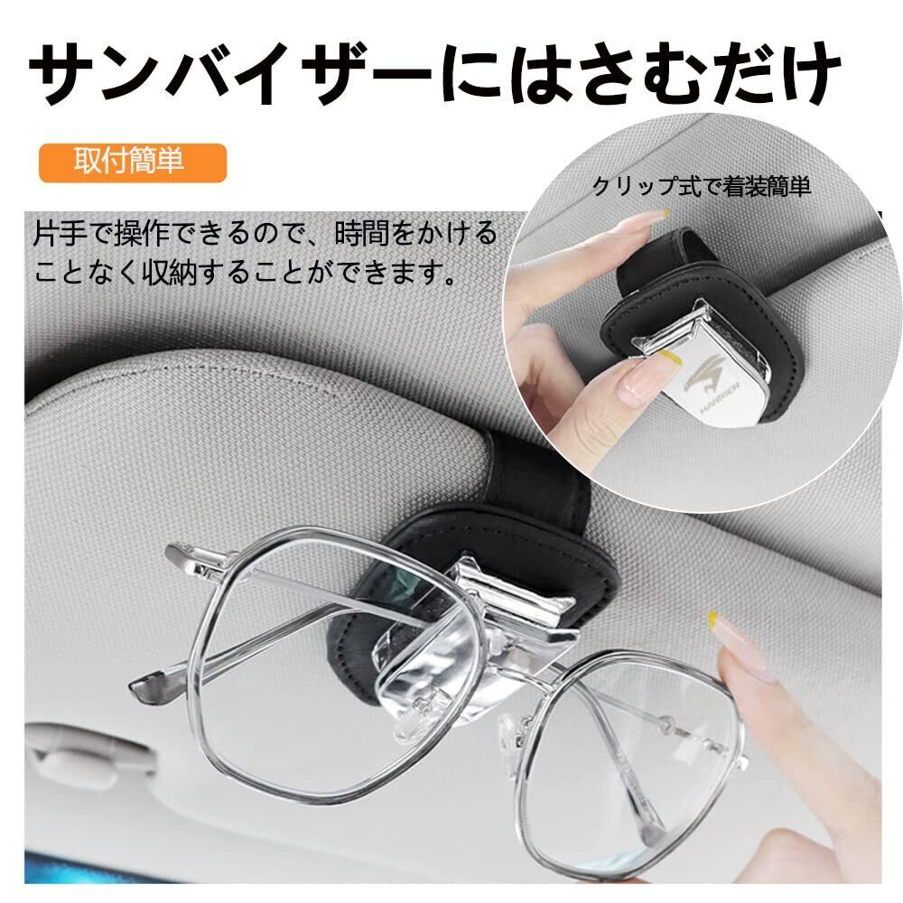 ハリアー 用 メガネホルダー レザー サングラスクリップ カーサンバイザー 用 サングラス 眼鏡 チケット カード クリップ ホルダー メガネクリップ 車眼鏡ホルダー 取り付け簡単 選べる4色 (Black)