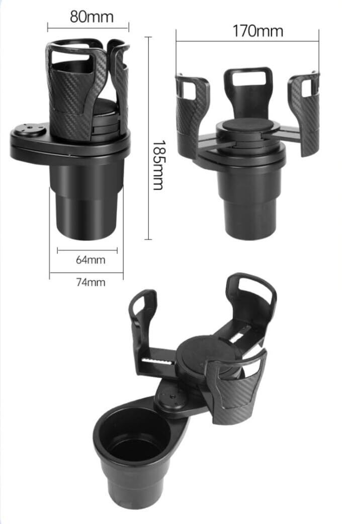 調整可能サイズ: 7.4cmから15cmまで対応可能な拡張式ホルダーで、様々なサイズのカップやボトルに対応