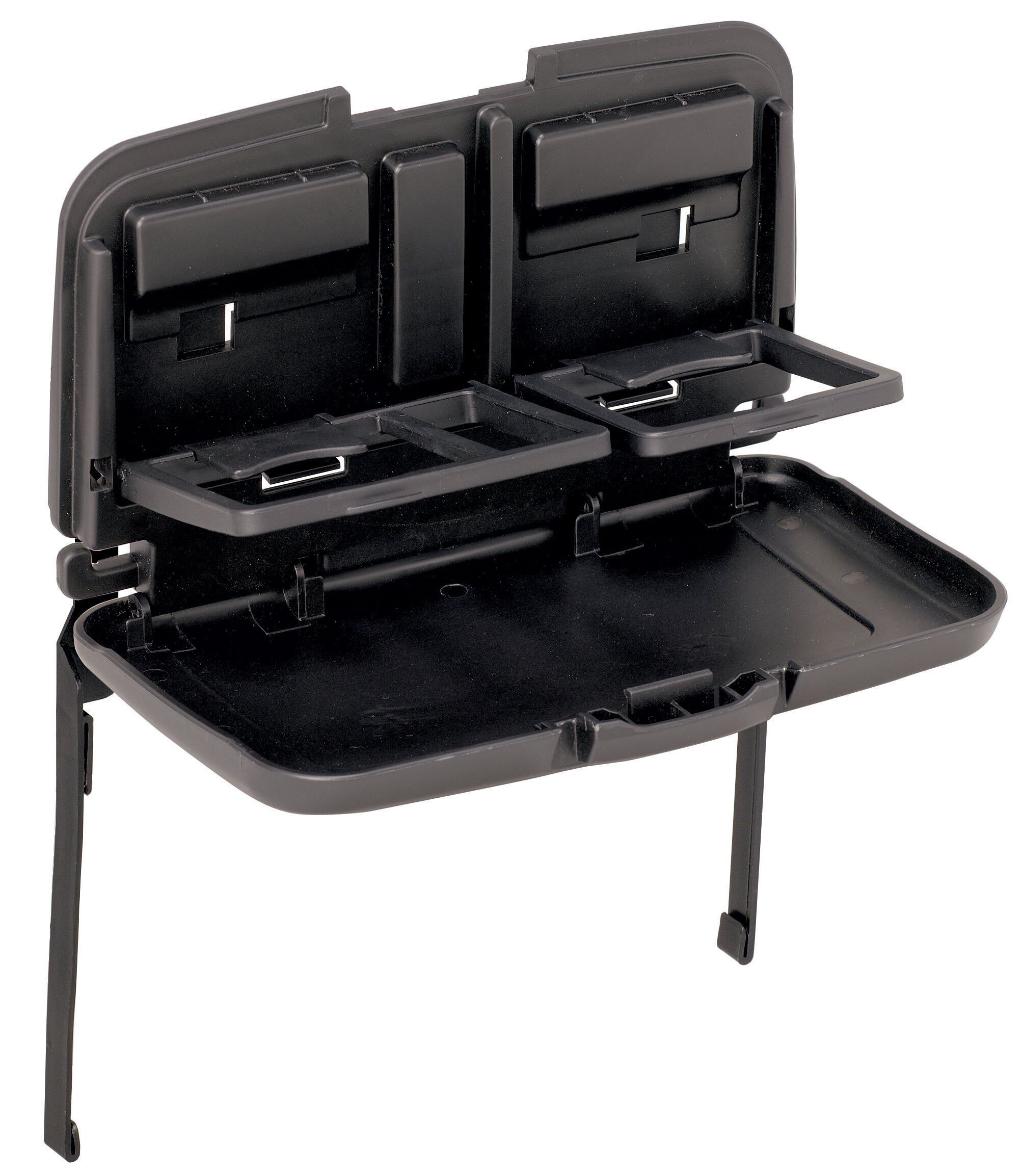 ヘッドレストが外れない車種にもご使用できるコンパクトで便利なリアシートトレイです。
