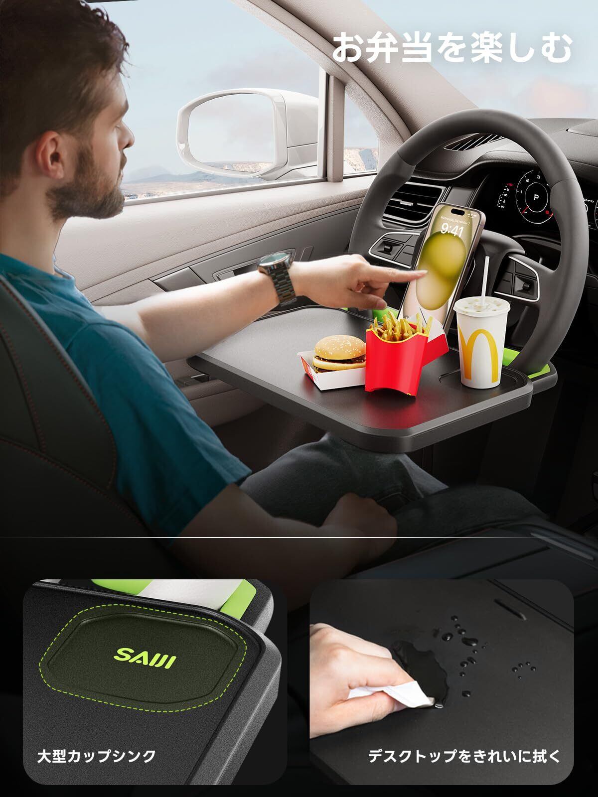 SAIJI 調整可能な 車 ハンドル テーブル 運転席 より安定した 車 テーブル 仕事 食事 掃除が簡単 耐久性 耐水性 ブラック