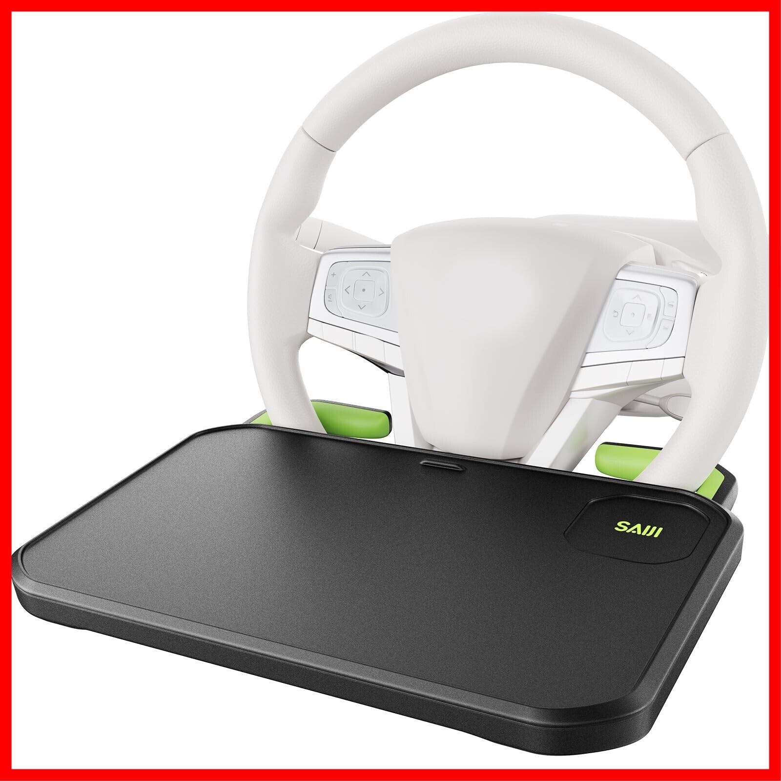 簡単な取り付け:専門的な技術は必要ありません。 製品底面のロック解除スイッチを押すだけで、スロットが自動的に飛び出します。 テーブルトップをステアリングホイールの上に置き、優しく圧力をかけてぴったりとフィットさせれば、効率的で使いやすい体験が待っています。