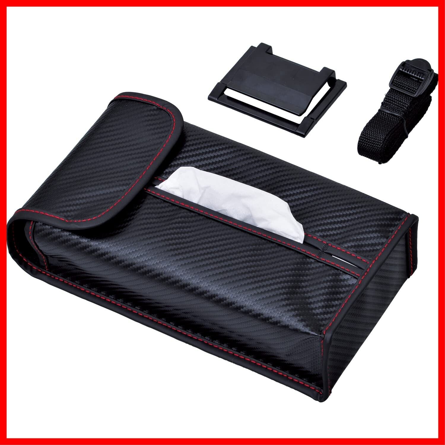カーボン調生地を使用したハイセンスなティッシュカバーです。車内で置き場所に困るティシュボックスをカンタンに収納ができます。取り付けベルトと固定ステーにより4種類(シートバック・アームレスト・ヘッドレスト・サンバイザー)の取り付け方法で、お好きな場所へ装着できます。