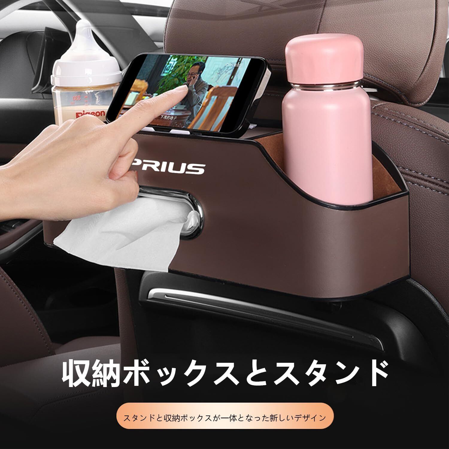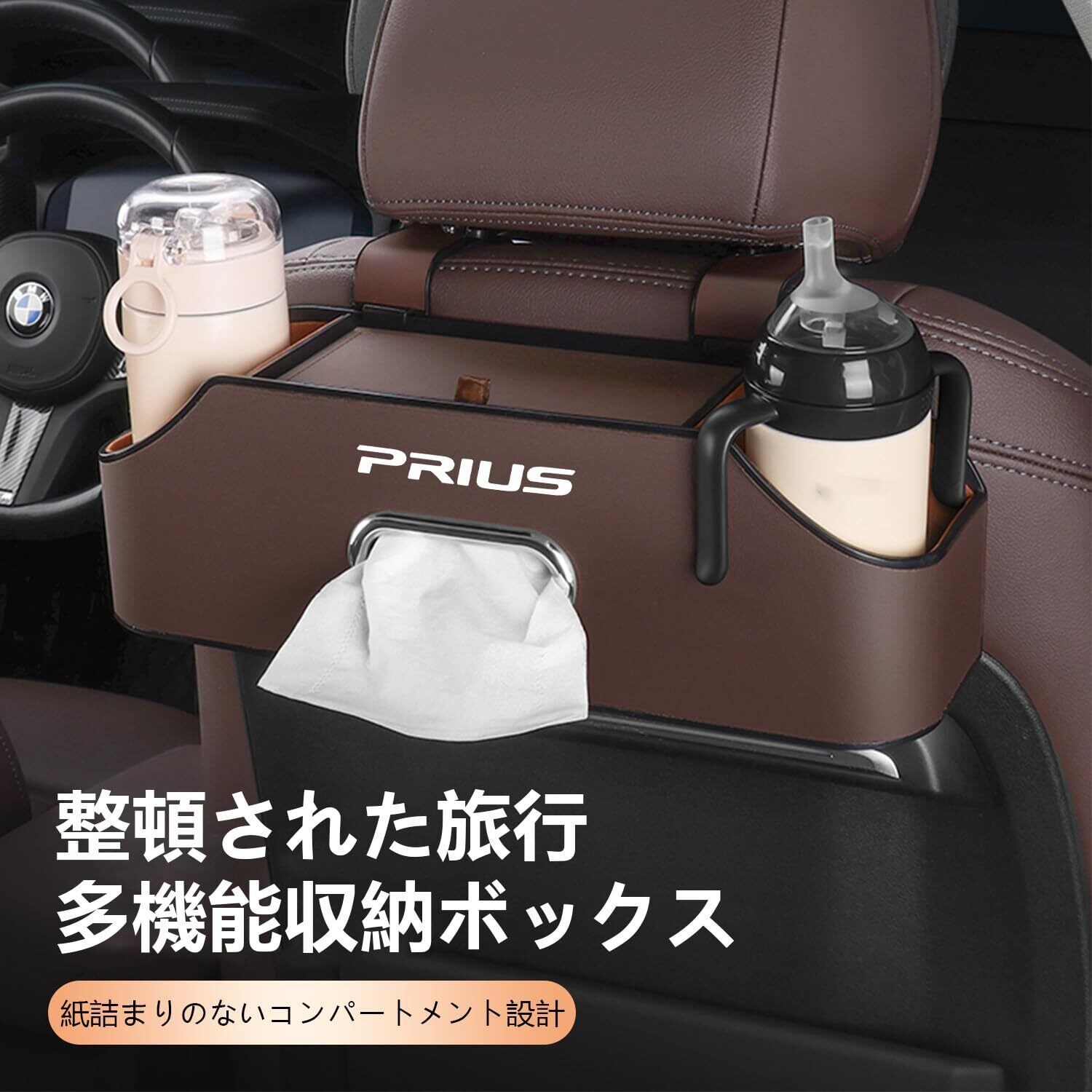 MailiMy 車 ティッシュホルダー,FT プリウス Priusに適し車の背もたれ収納ボックスは、多機能の吊り下げ式収納スタンドです。ティッシュ、携帯電話、飲み物などを収納するために最適なスタンドです。汚れに強く、簡単に清掃できます PC+超耐久レザー素材を使用し、2つのカップホルダー、2つのフック、1つの携帯電話ホルダーが付属しており ブラック