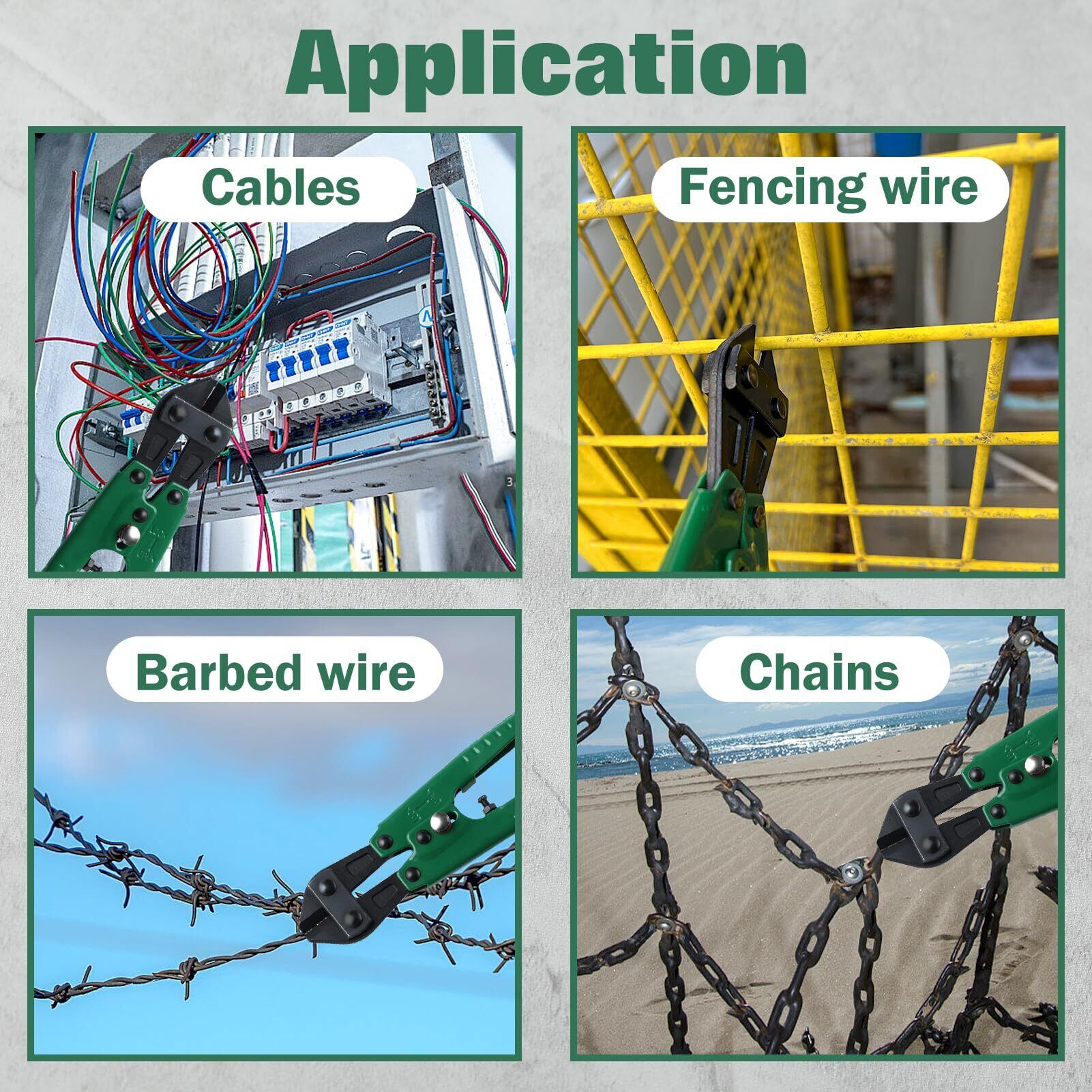 用途:ミニボルトカッターは、建設、住宅修理、自動車修理やフェンシングなど、さまざまな分野で広く使用されています。チェーン、ボルト、ケーブルワイヤ、リベット、小さな南京錠、有刺鉄線、および最大3/16インチの厚さの他の材料を切断するのに最適です。