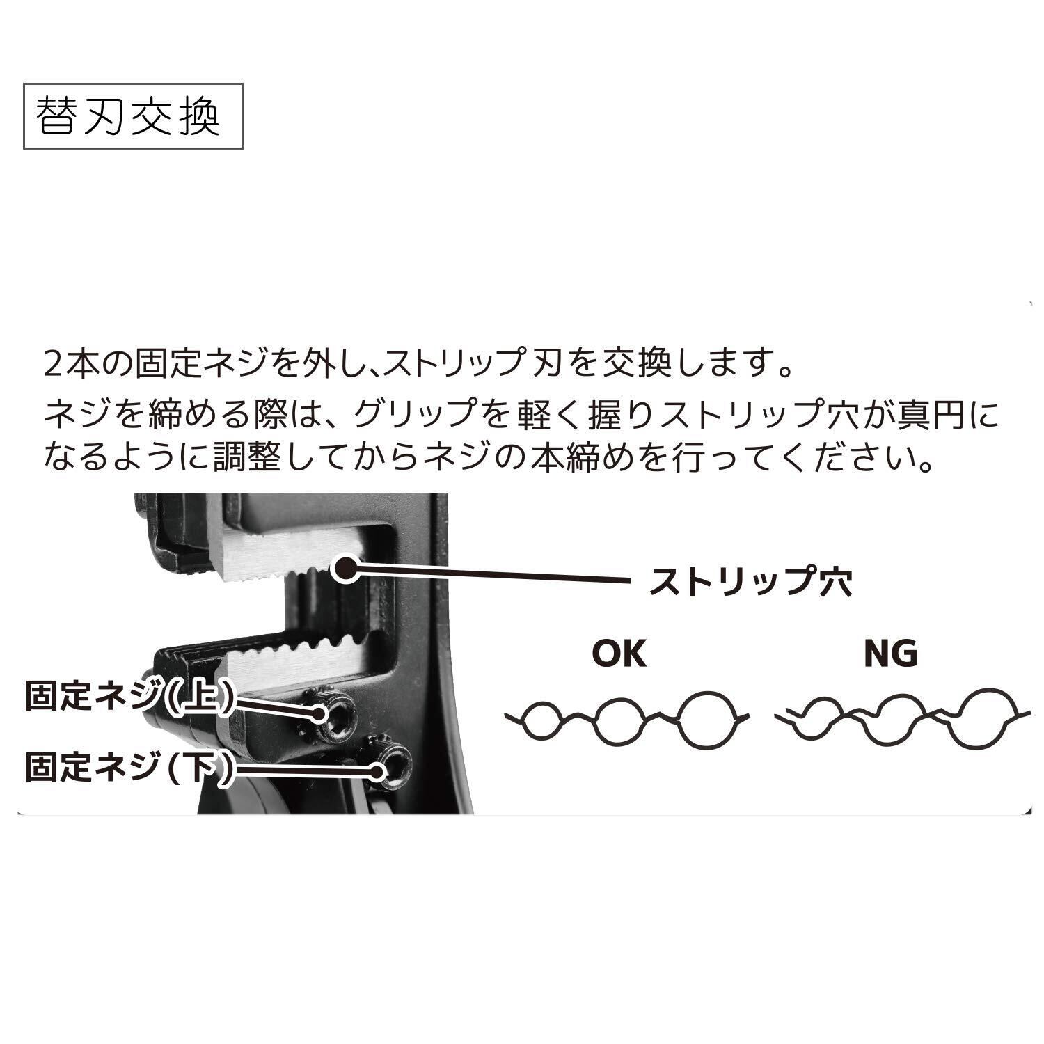 握るだけで簡単にストリップでき、使用時の負担を軽減します。<br>ストリップゲージ付きでストリップする被覆の長さを設定できます。