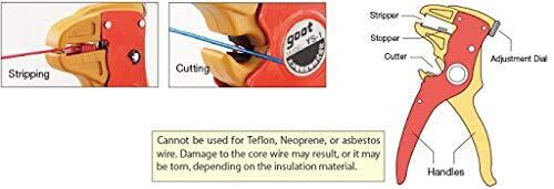 テフロン、ネオプレン、アスベストなどのストリップには使用できません。 被覆によっては芯線にキズが入ったり、ちぎれる事があります。