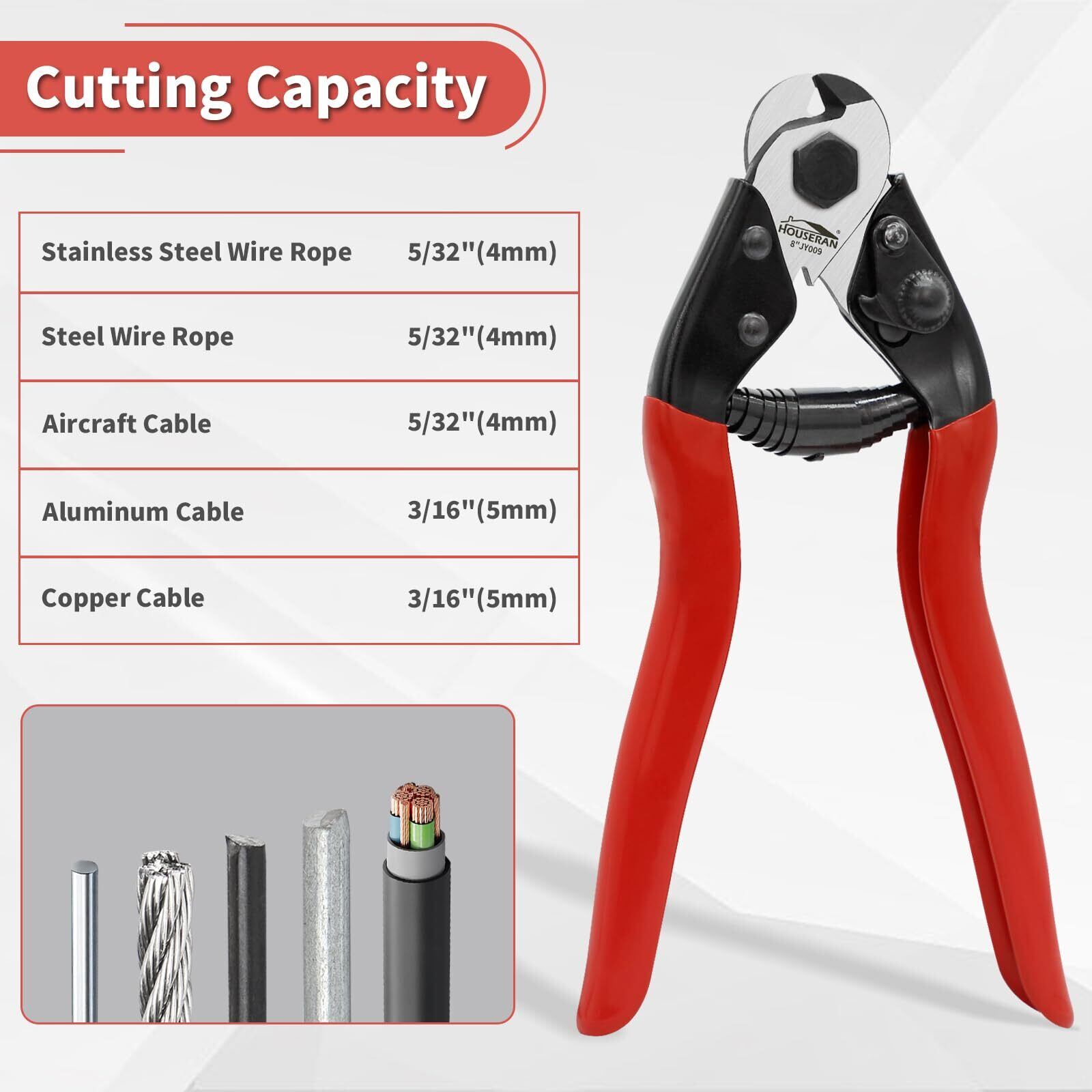 HOUSERAN 8" ワイヤーカッター 自転車 ワイヤーカッター 強力 番線 フェンス ワイヤーシール デッキ 手すり DIY 銅線対応