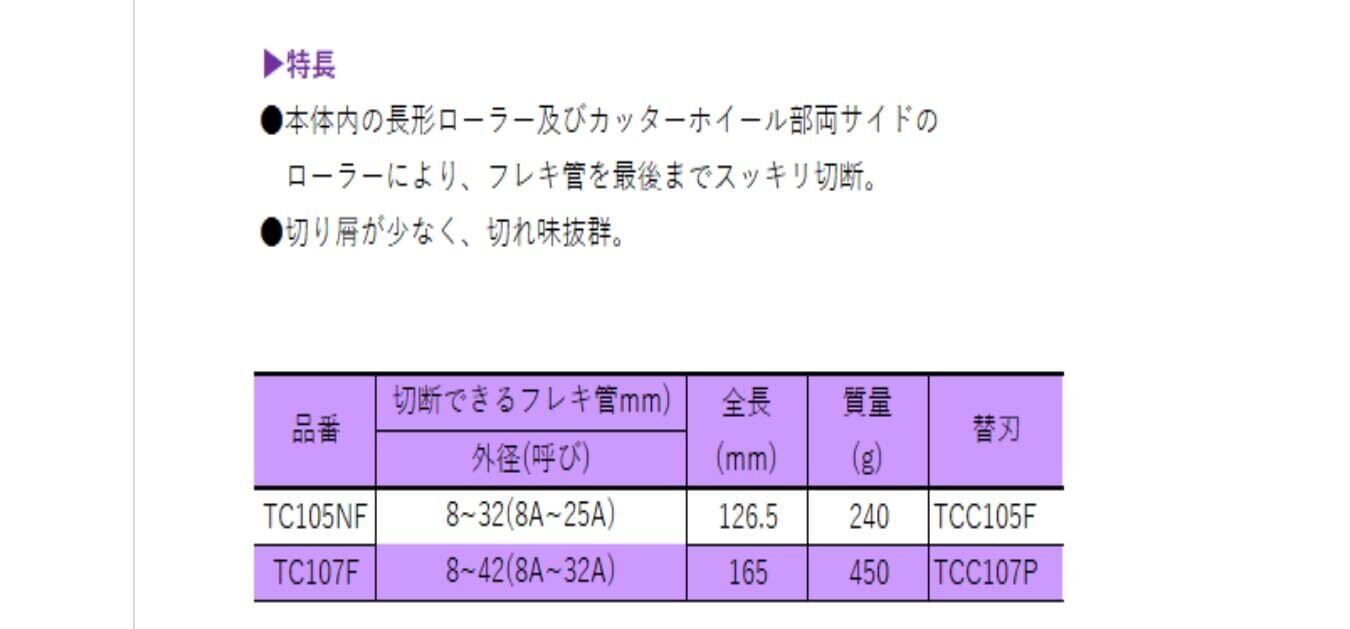 スーパー ステンレスフレキ管専用カッター TC105NF