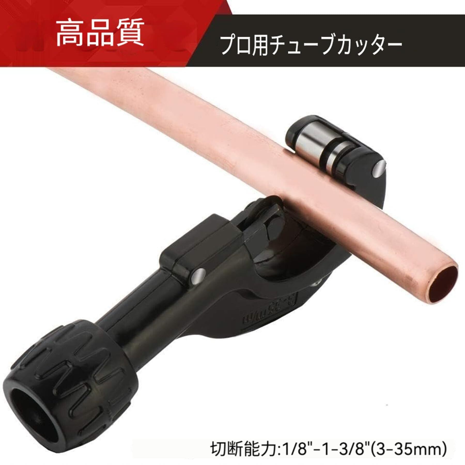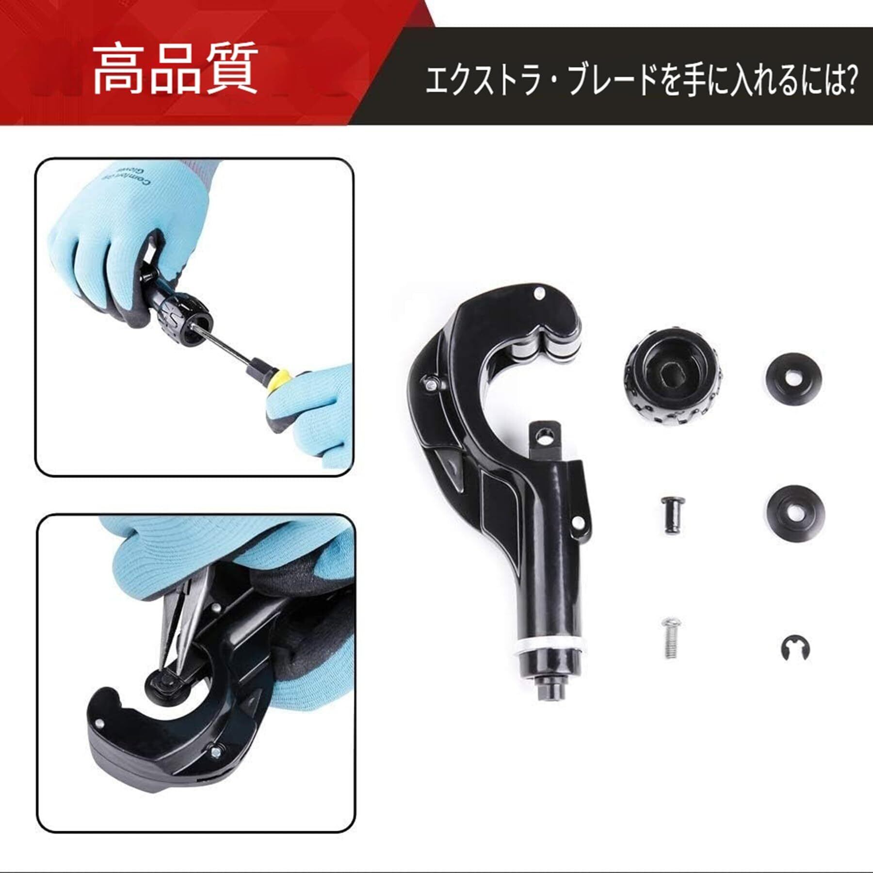 パイプカッター 3~35mm対応 面取りカッター&替刃付き 切れ味抜群 携帯型 カッター工具 アルミ 銅管 塩ビ ステンレス 鉄パイプ対応 DIY 配管工事用 ブラック