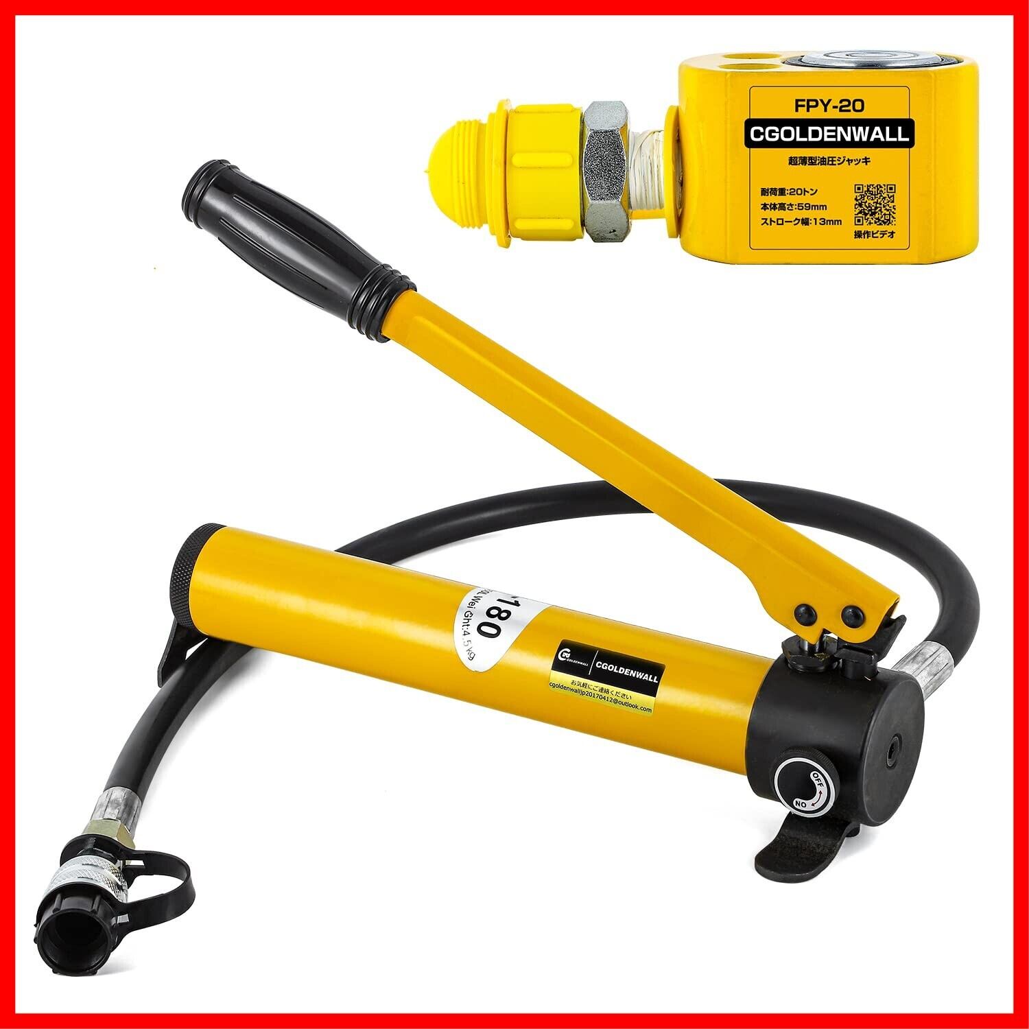 CGOLDENWALL 小型油圧ジャッキ ポンプ付き 最大耐荷重5t、10t、20t 狭いスペースの持ち上げ作業に最適 (20トン+ポンプ)