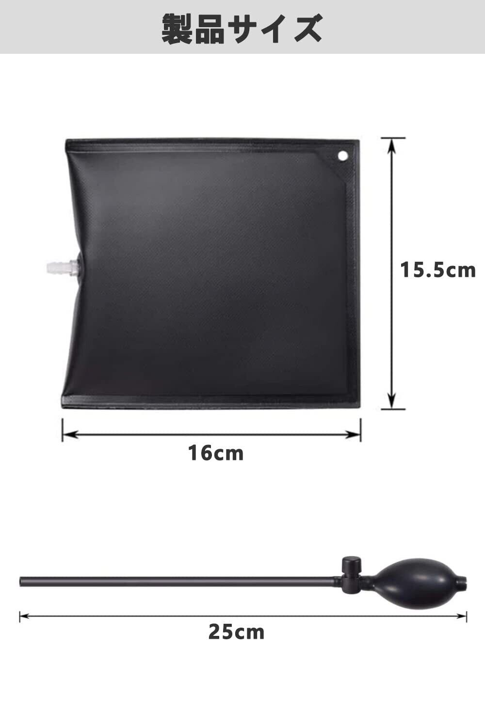 【様々な用途に】このエアーウエッジがいろいろな分野で幅広く使用できます。車のロック解除、インロックの際の鍵を解錠する作業に。冷蔵庫、家具、窓、扉、本棚、圧搾ポンプロッカーなどの持ち上げ。