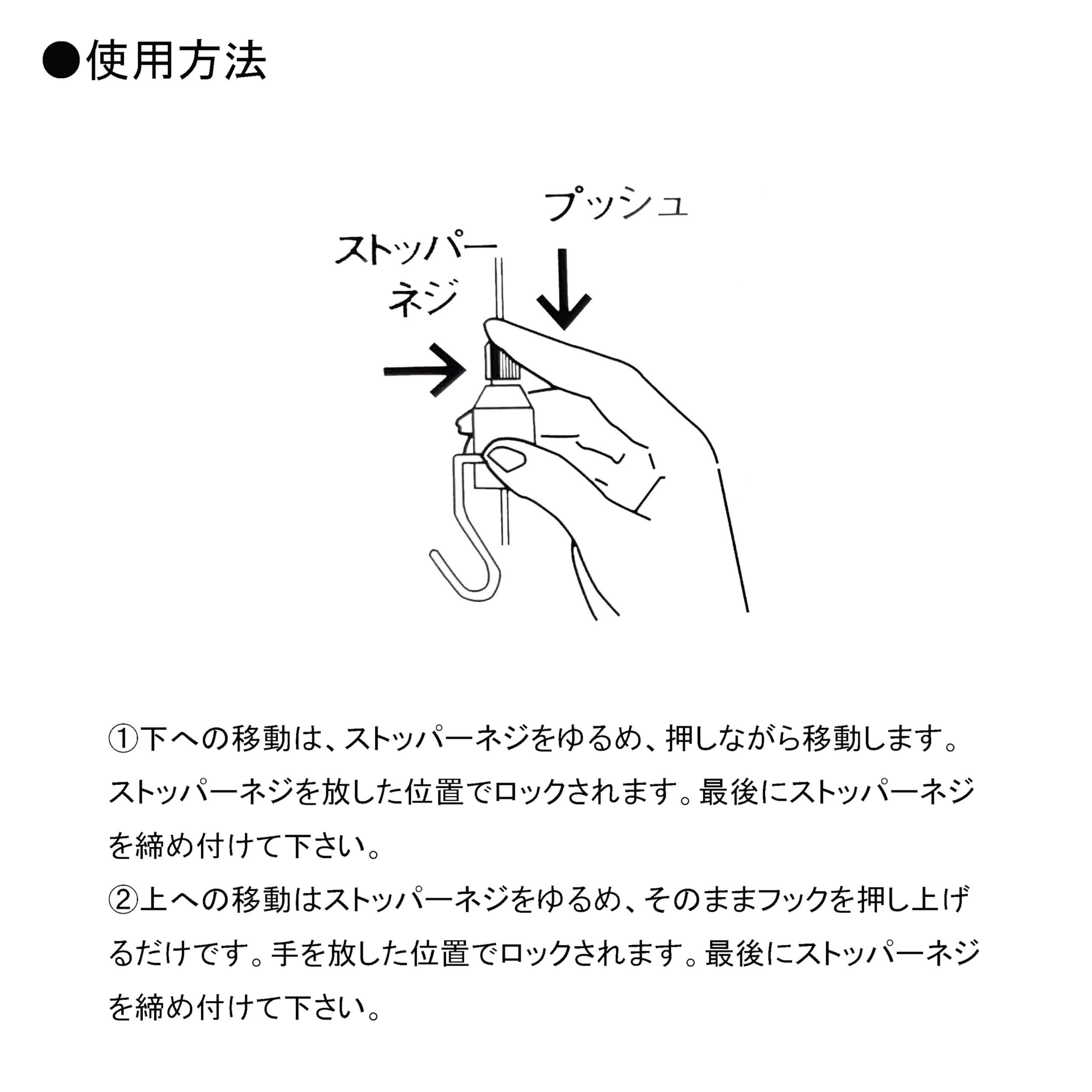 フック形状の自在金具とテグスがセットになった吊下げ金具です。
