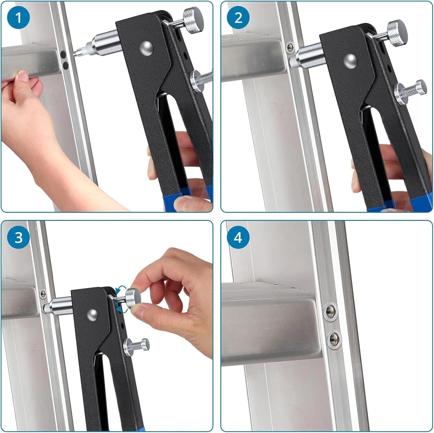 【高品質ハンドリベッターセット】高強度アルミニウムボディと鍛造炭素鋼ハンドルに、滑り止めのラバーで覆われた使い勝手の良いデザインです。