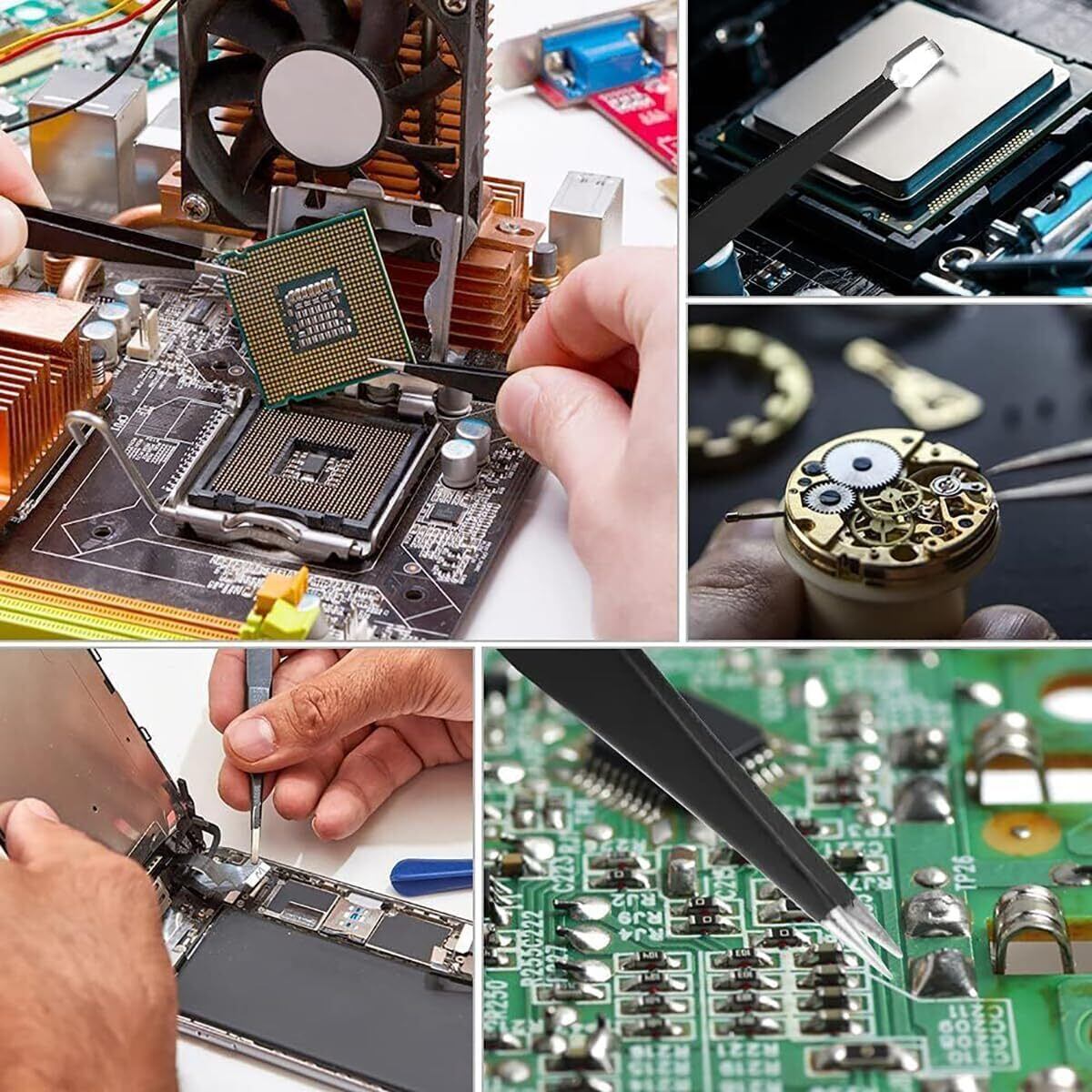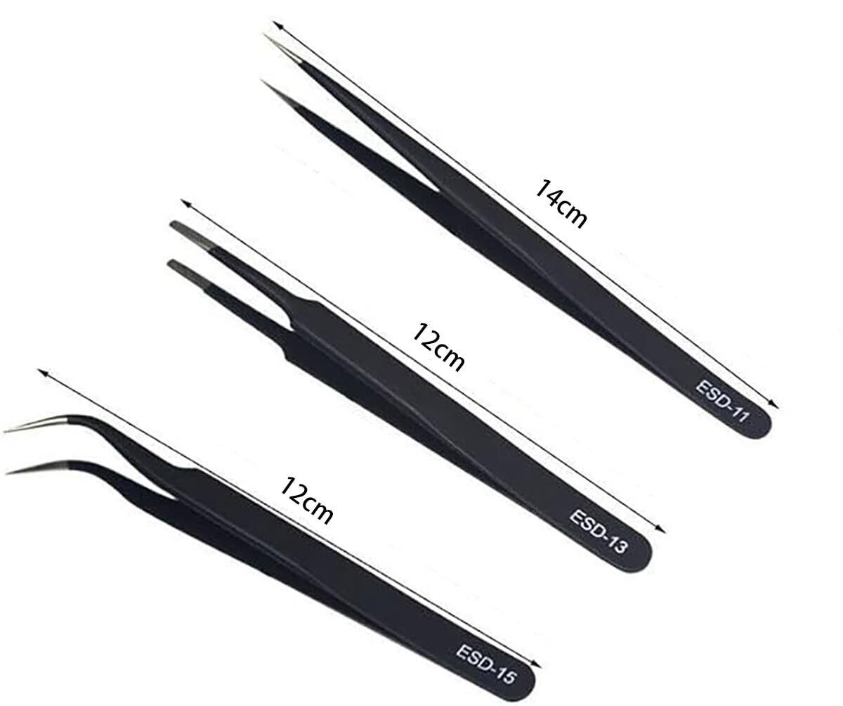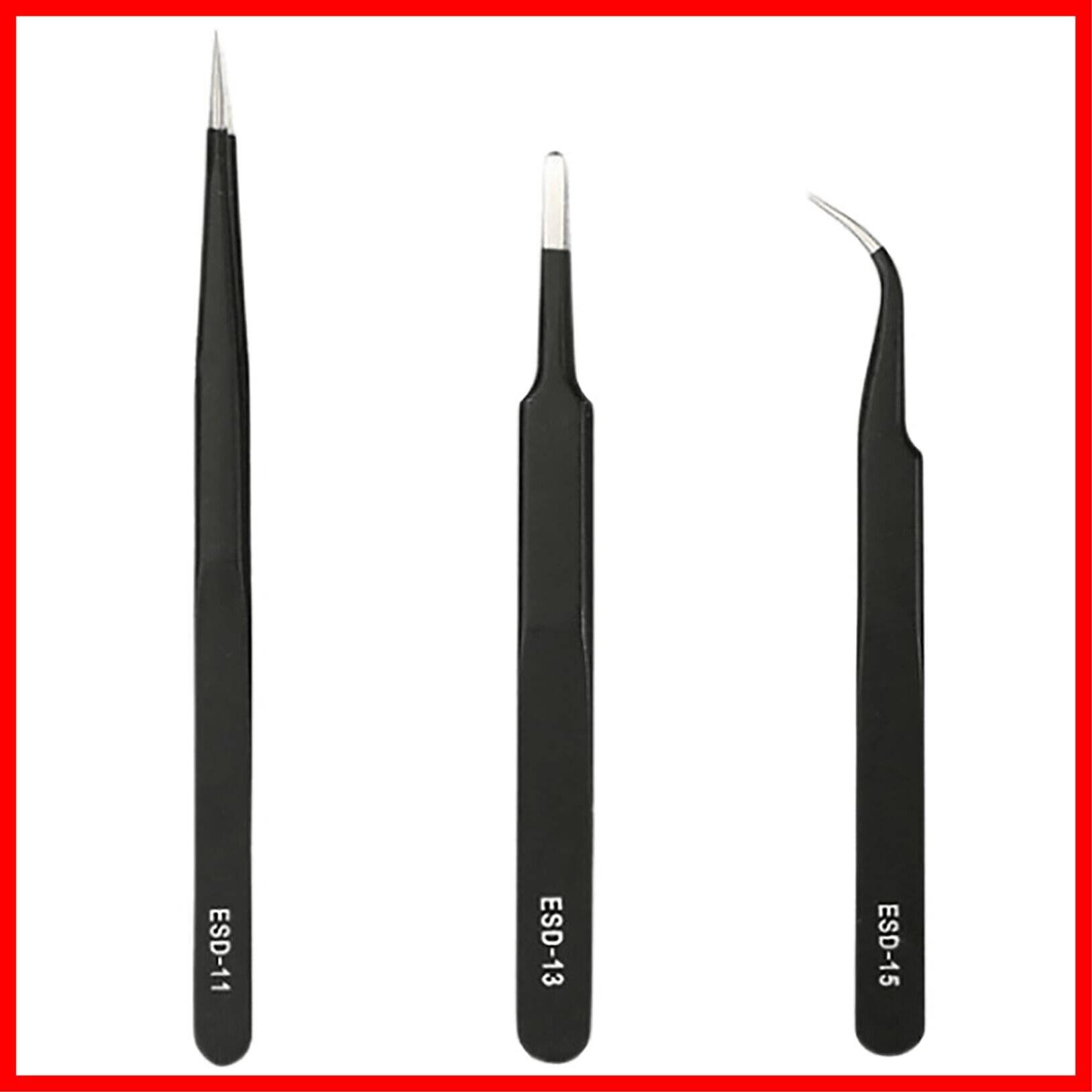 精密ピンセット 3個セット 高精度 ブラック 細いピンセット 手芸 ツイーザー 模型製作 極細 精密 ステンレス製 防錆 静電気防止