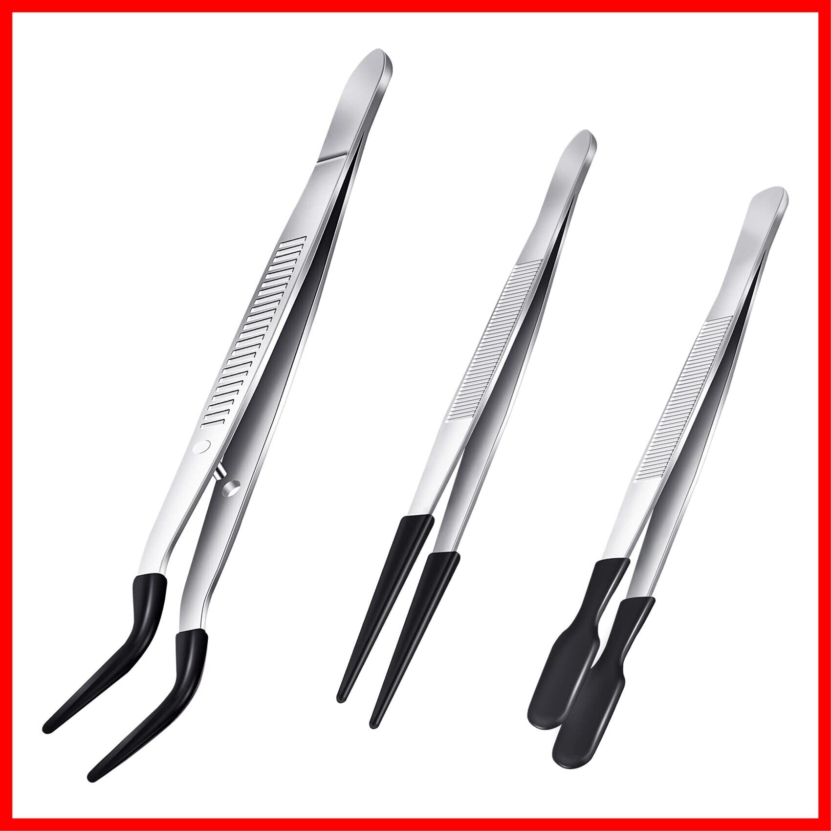 Limnyves 3個 ピンセット ゴムチップ付きピンセット PVCコーティングピンセットセット、ラバーストレートと平先ピンセット 黒