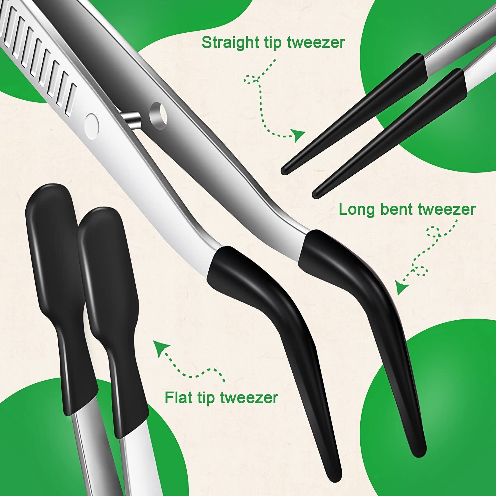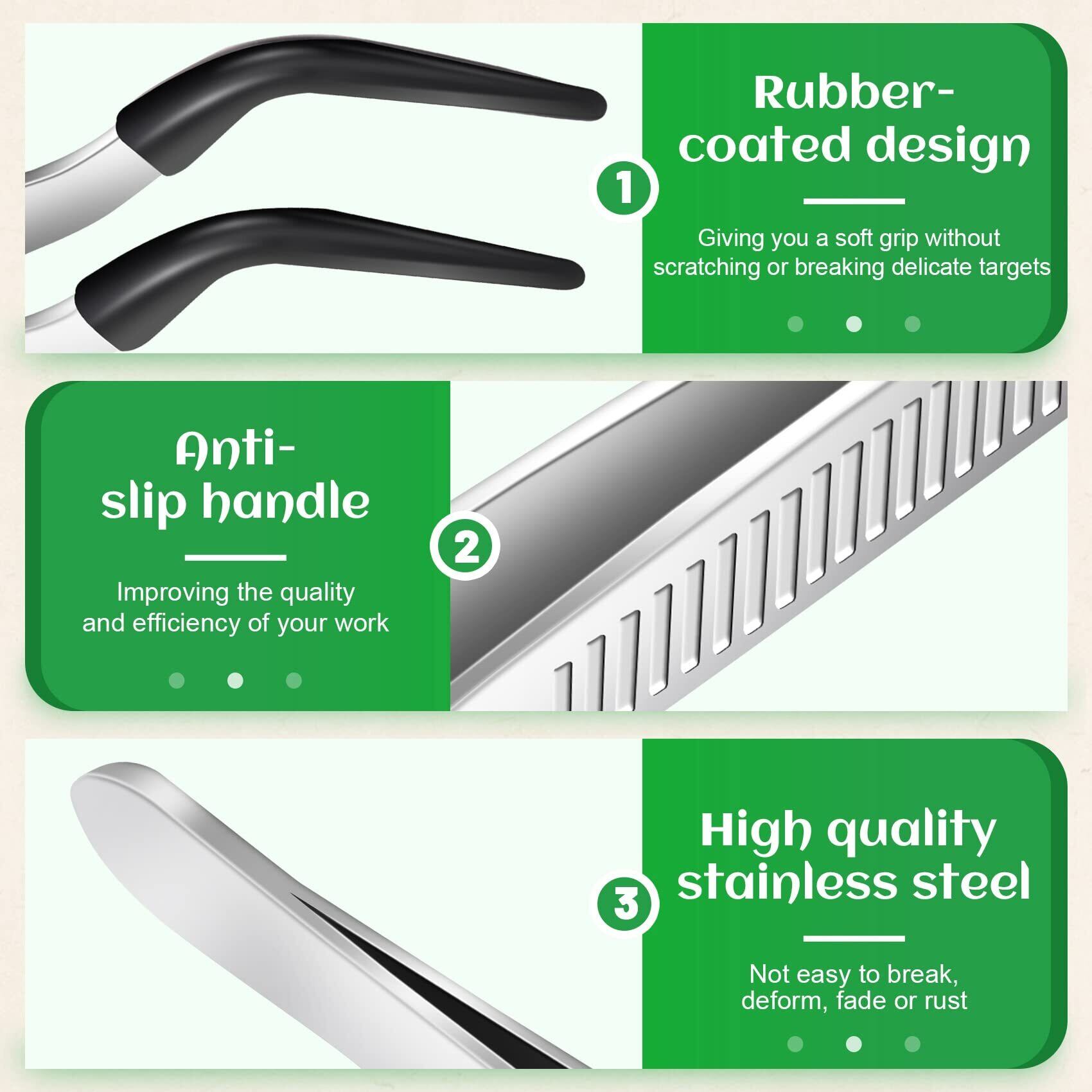 素材情報: この湾曲したピンセットはステンレススチール製で、壊れたり、変形したり、色あせたり、錆びたりしません。ピンセットヘッドのコーティングはゴムでできており、脱落しにくく、柔らかすぎず弾力性があり、使いやすく信頼性の高い使用が特徴です。