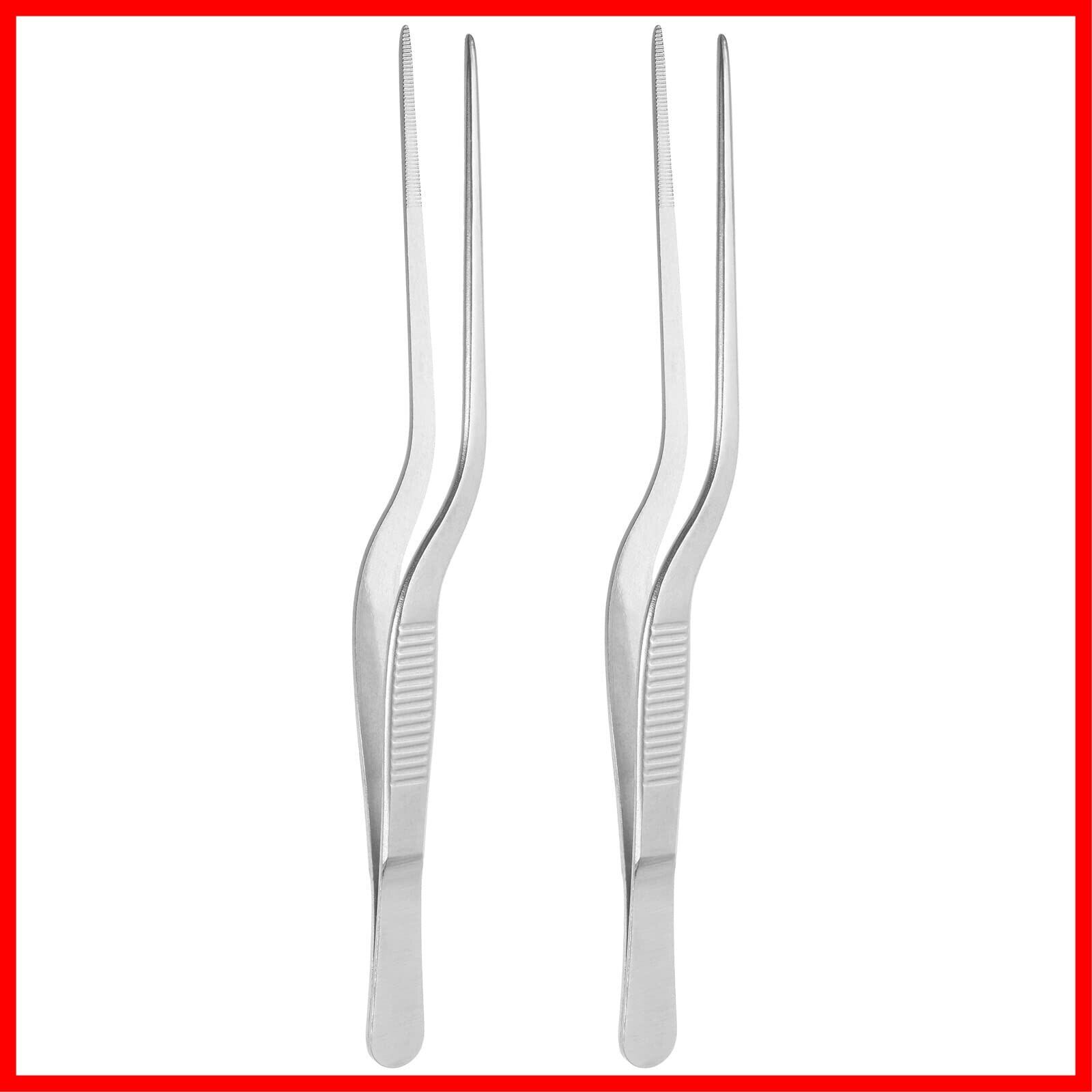 uxcell オフセットピンセットトング 16 cm ステンレス鋼 キッチン調理用 精密鋸歯状チップピンセット ガーデニング装飾用 メッキ 2個