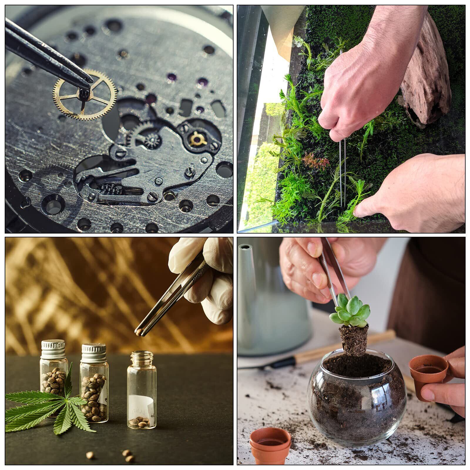 応用 - メッキピンセットは広く使用されており、小さな物体を掴んだり、アイテムを皿に盛り付けたり、配置したりするのが簡単で、手作り、多肉植物、ガーデニング、装飾、水族館、電子組み立て、修理などに適しています。