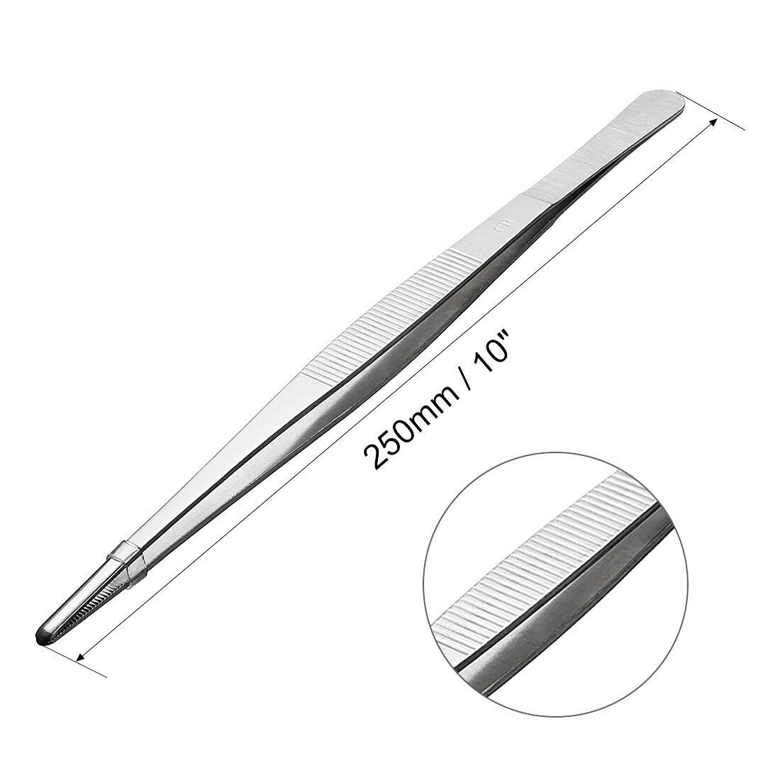 uxcell ステンレススチールストレートブラントピンセット 鋸歯状チップデイリーガーデンツール付き 250mm 1個入り