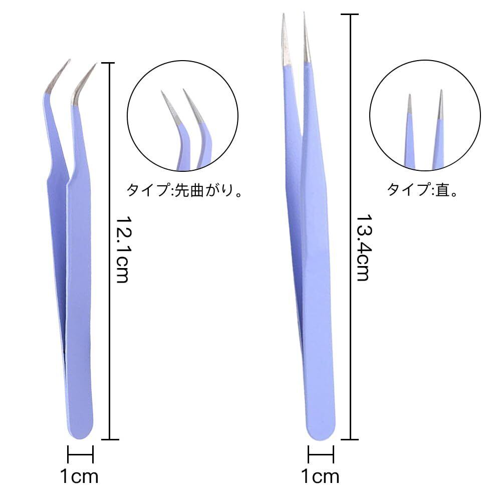 ストレート型と先曲型の2種類:ストレート型と先曲型の2種類のピンセットがセットになっています。用途に応じて使い分けができます。