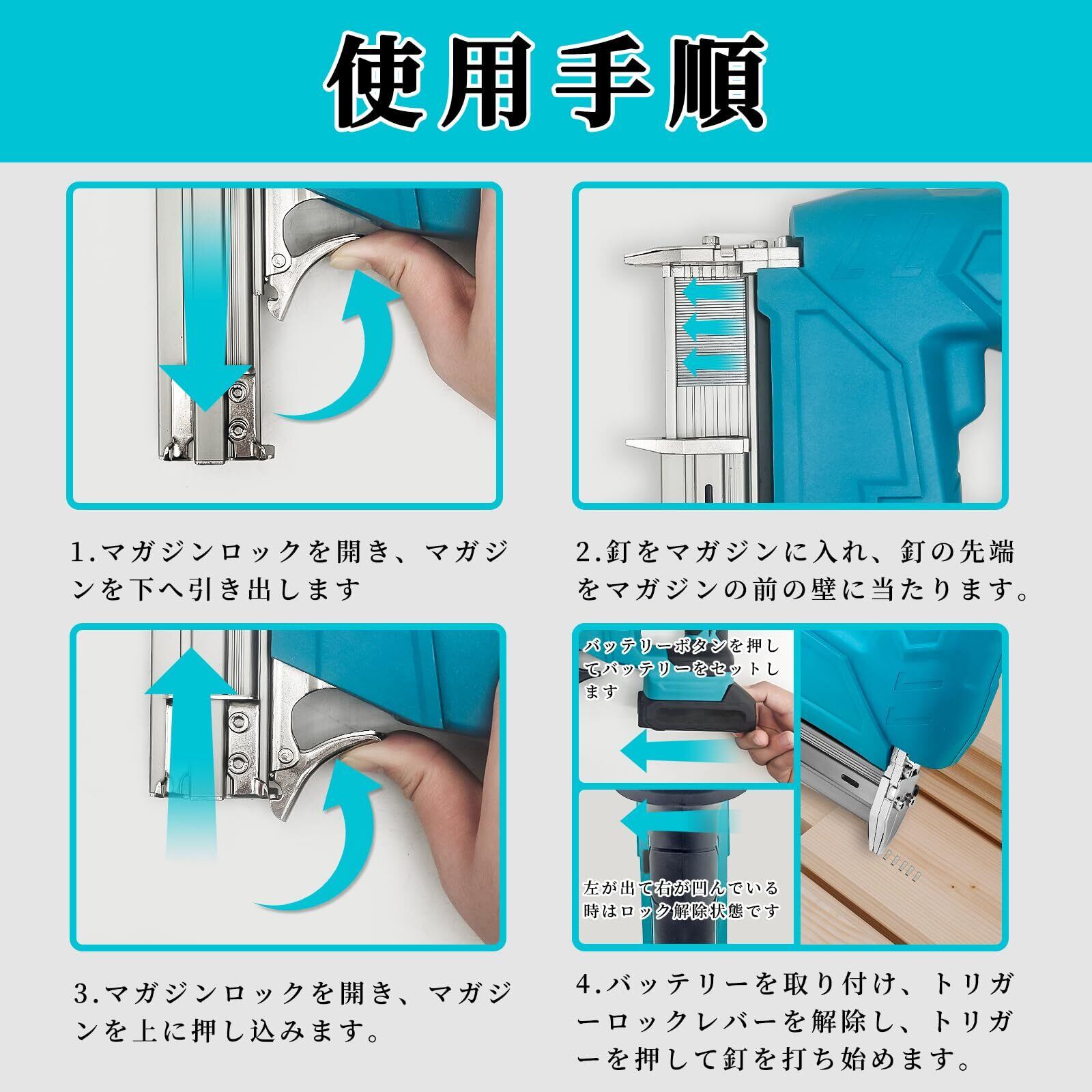 【特価商品】Howhite 電動タッカー 釘打ち機 フィニッシュネイラー 充電式 単発連発切替 DIY 日曜大工 家具修理 木工用 マキタ18vバッテリー対応 釘500本付き(本体のみ) | Cherry Blossoms