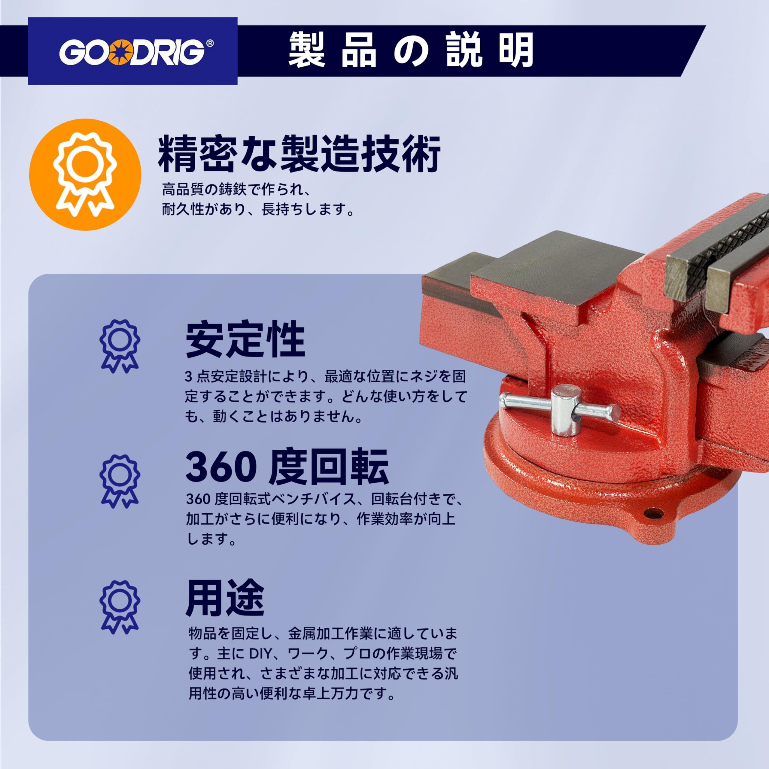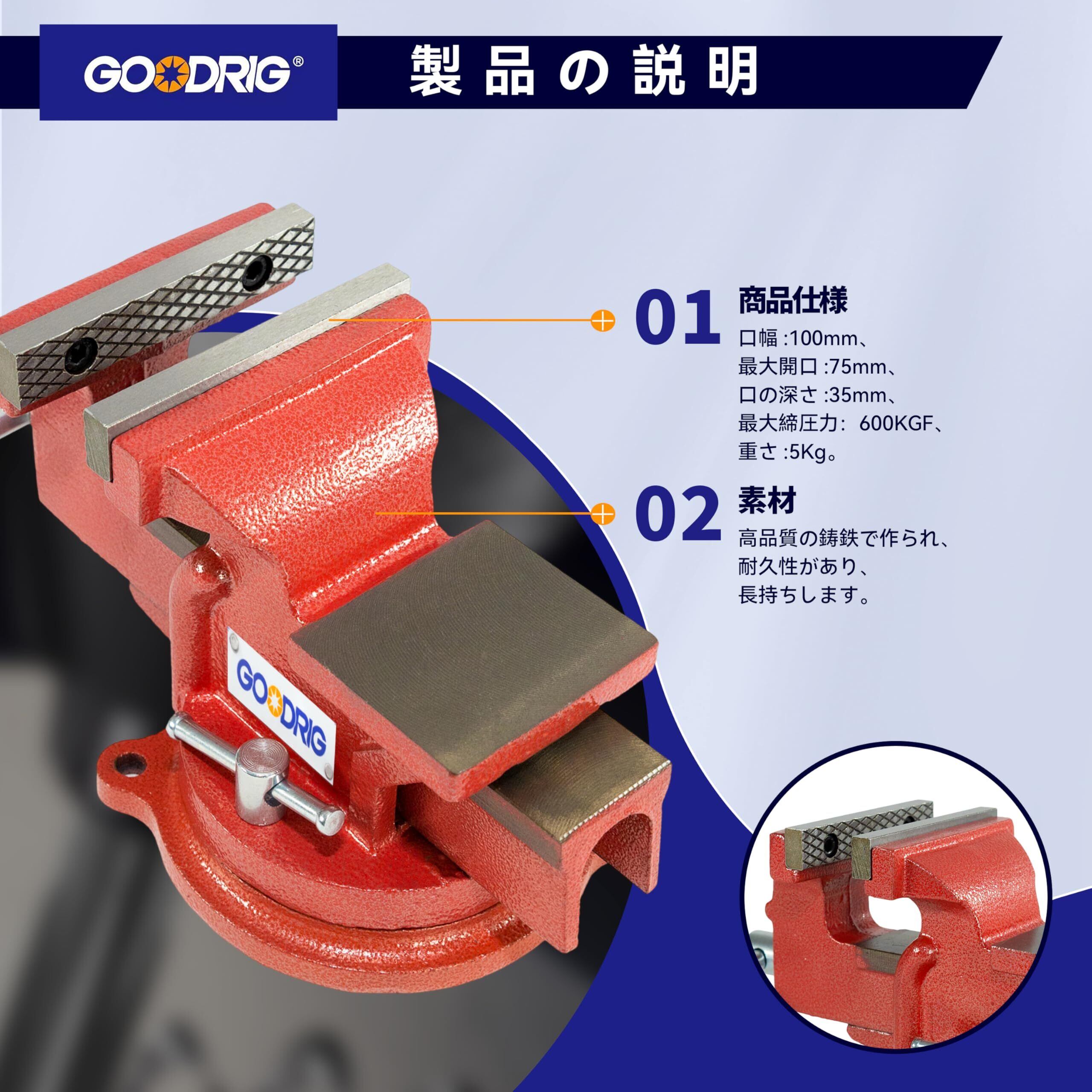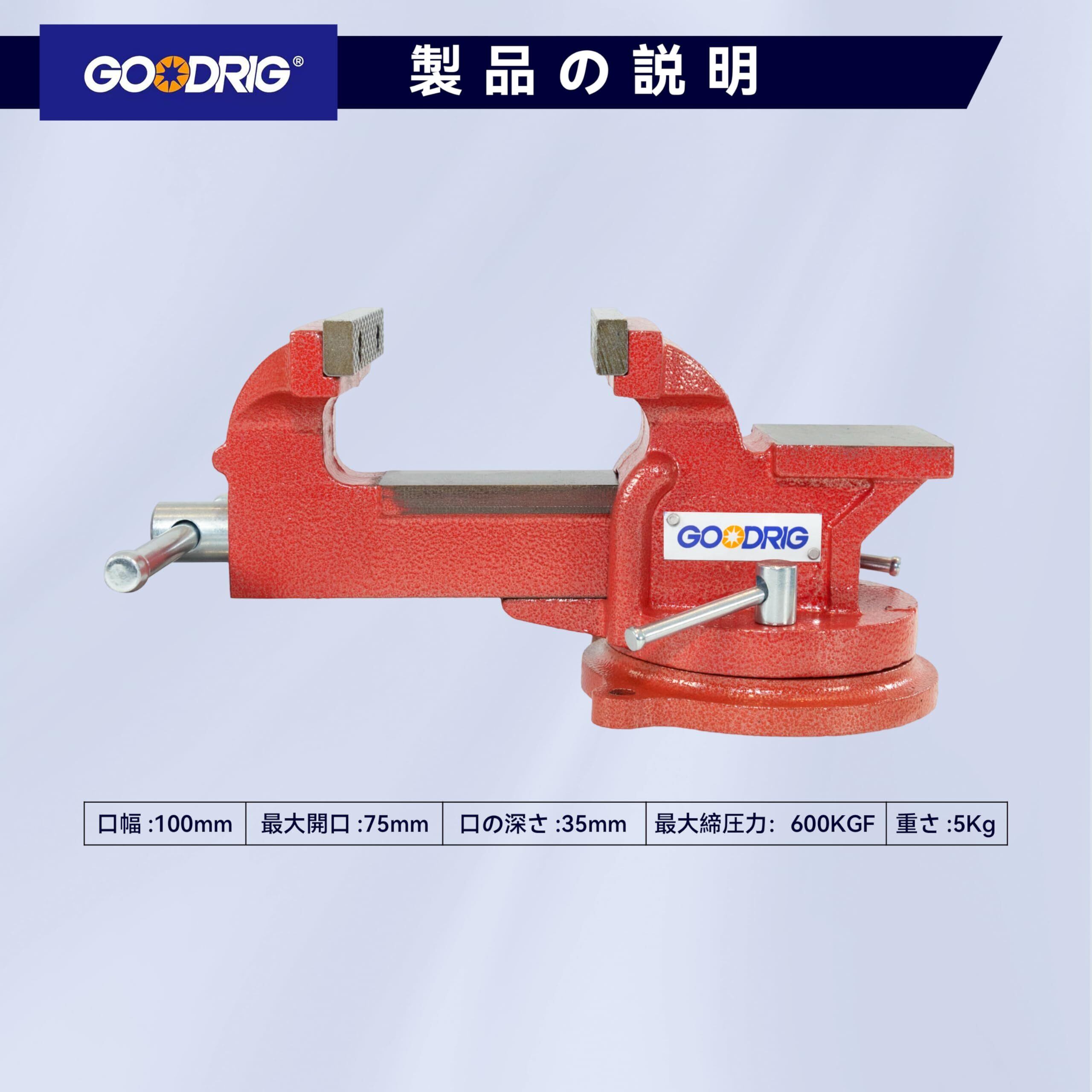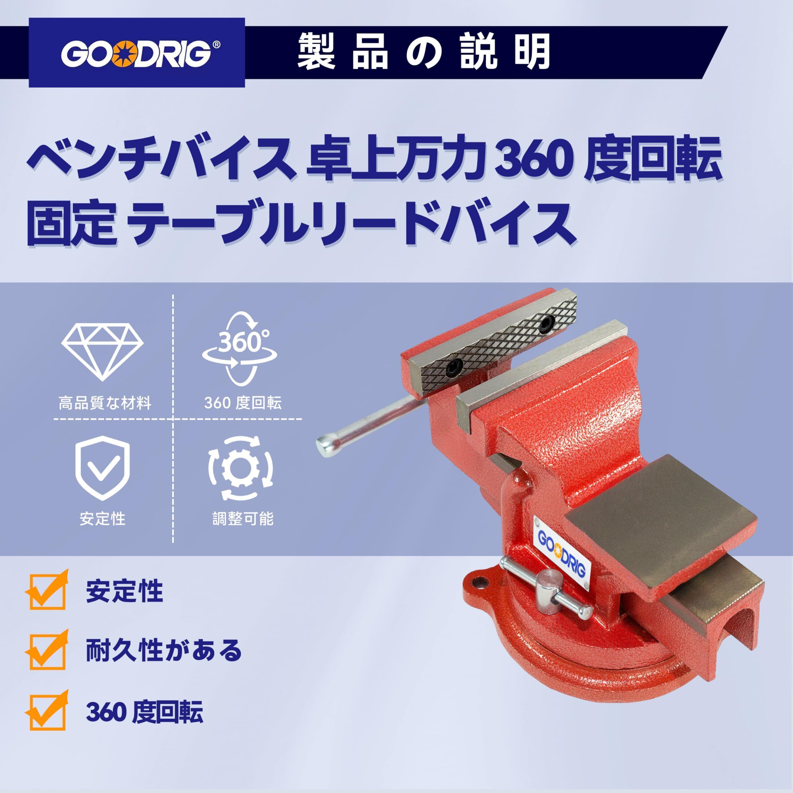GOODRIG ベンチバイス 卓上万力 360度回転 口幅:100mm 最大開口:80mm 360度回転 作業台 アンヴィルバイス 回転 加工 固定 テーブルリードバイス