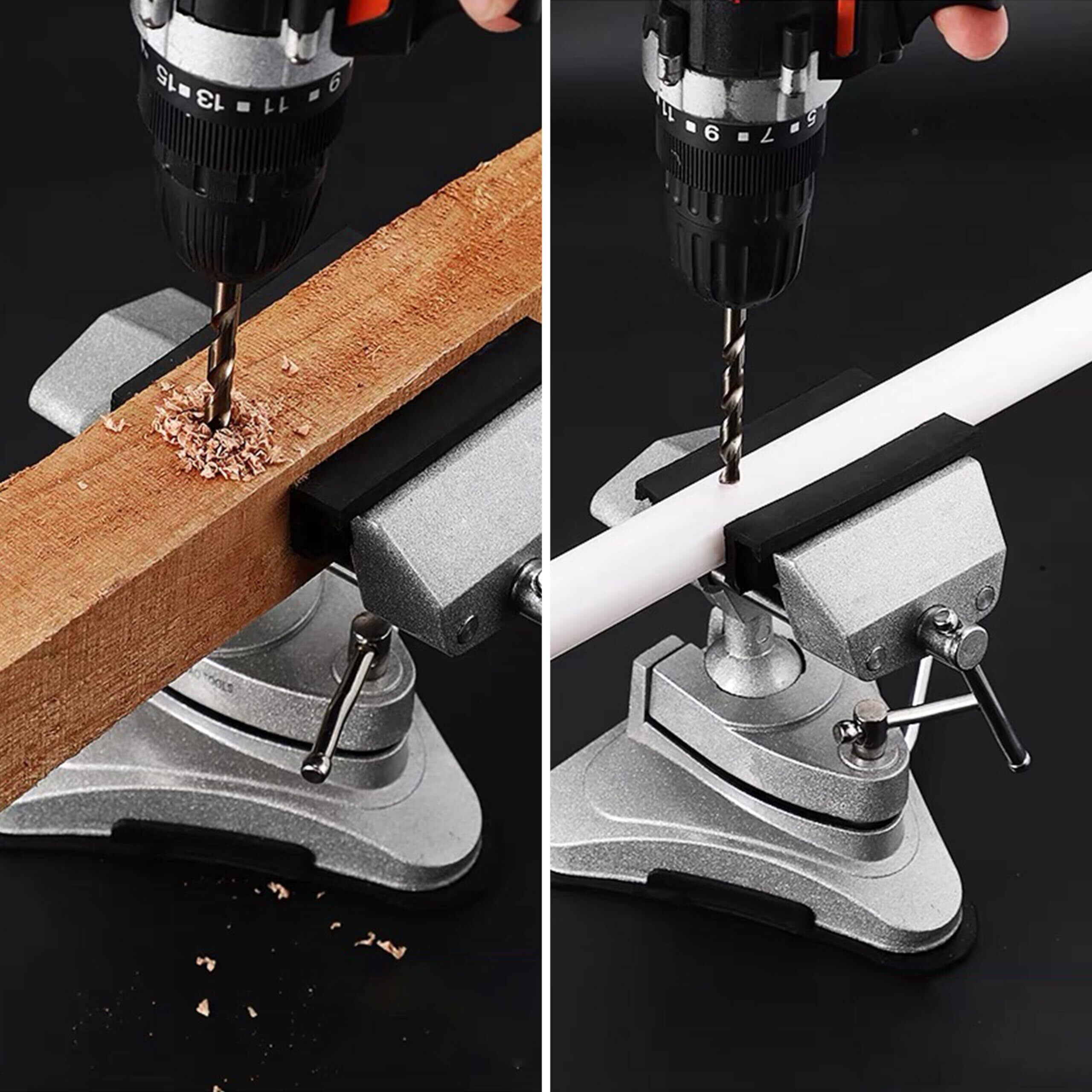 【使用】吸盤固定式でV字溝付き、作業台やボール盤や卓上に取り付けて、物を万力にのせて、挟むだけで簡単に加工出来ます。